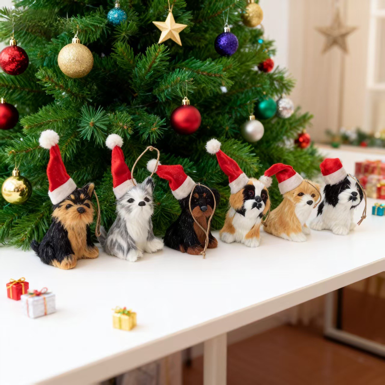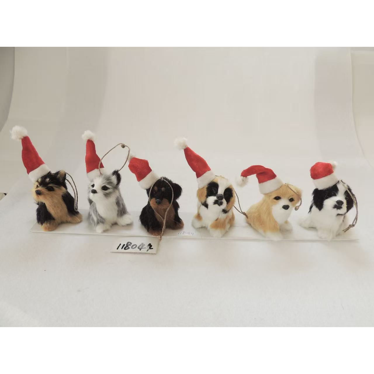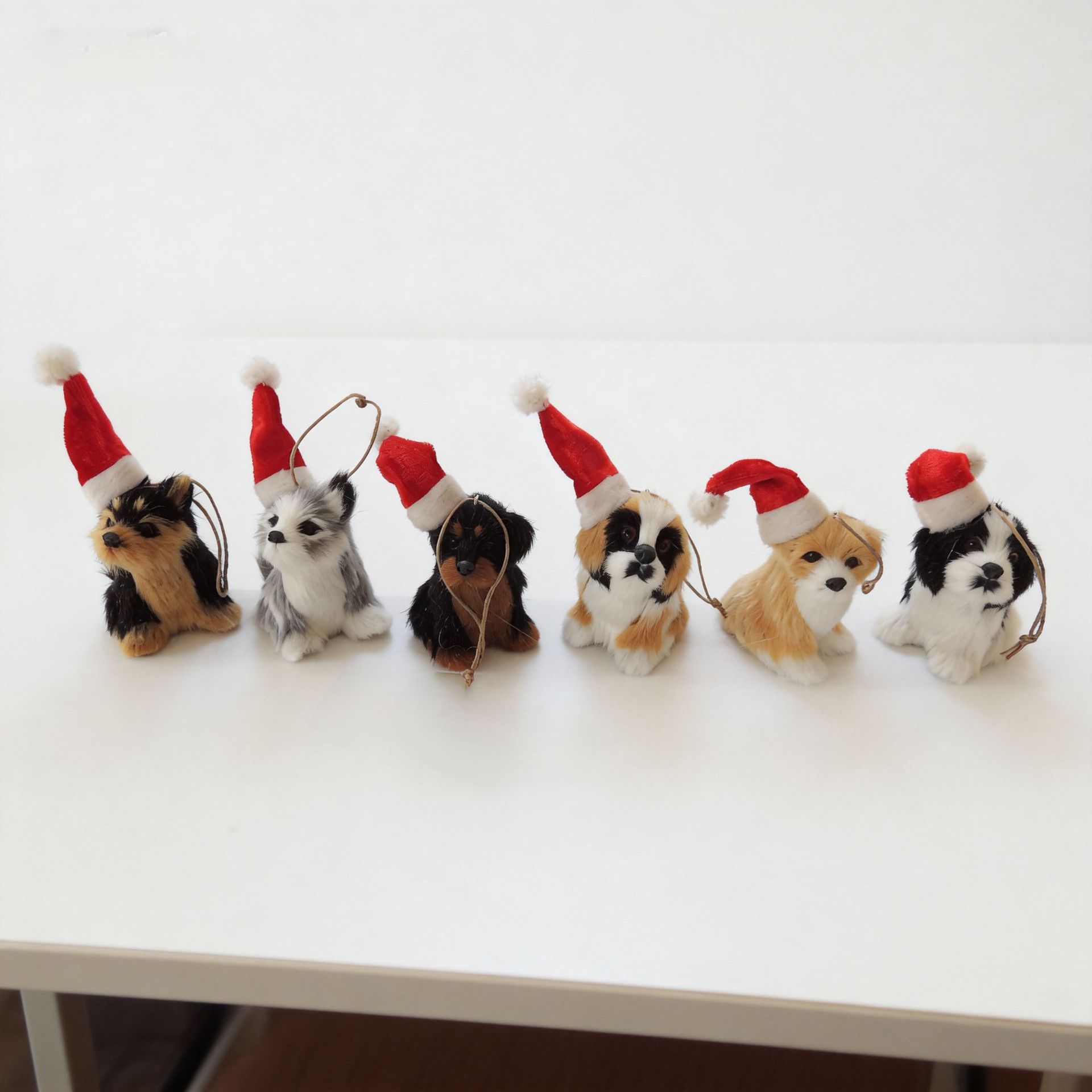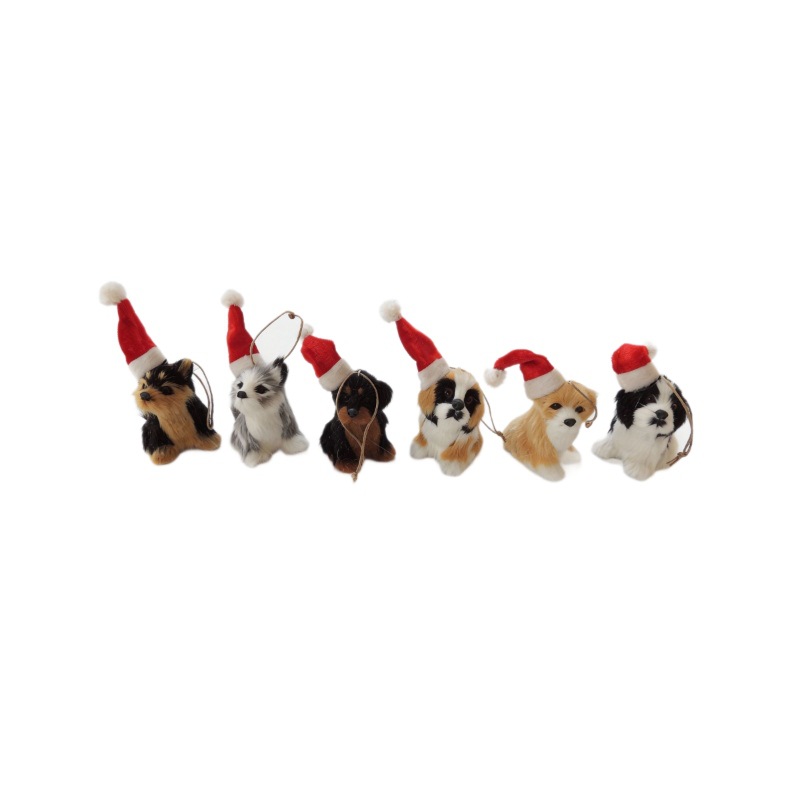 仿真毛绒小动物可爱圣诞帽小狗挂件圣诞吊饰装饰桌面摆件礼品