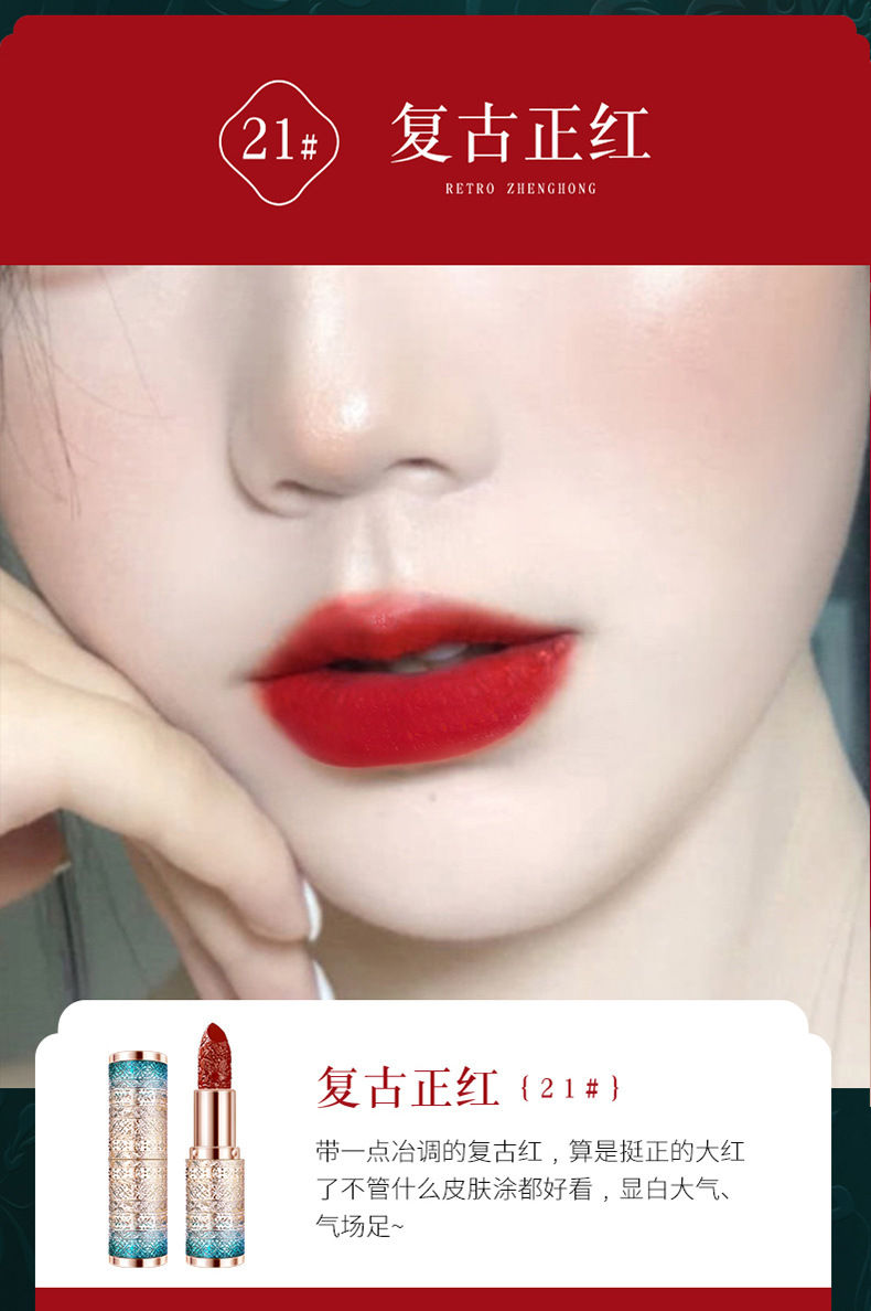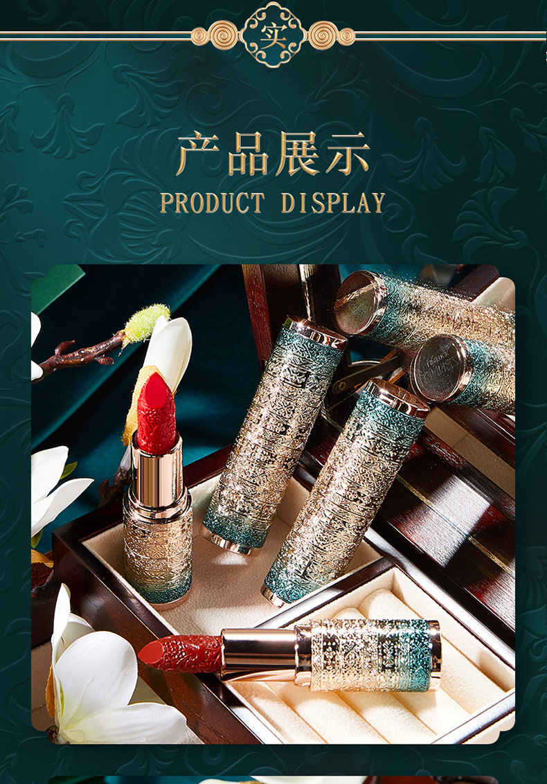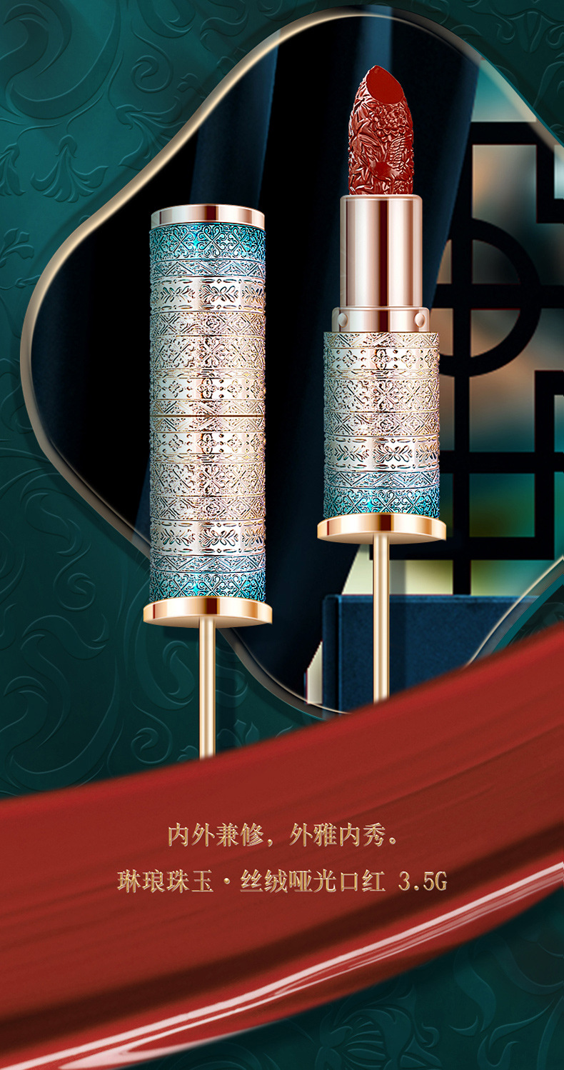 琳妆琳琅珠玉丝绒哑光口红 中国风雕花滋润保湿不易掉色浮雕口红 English | 投诉