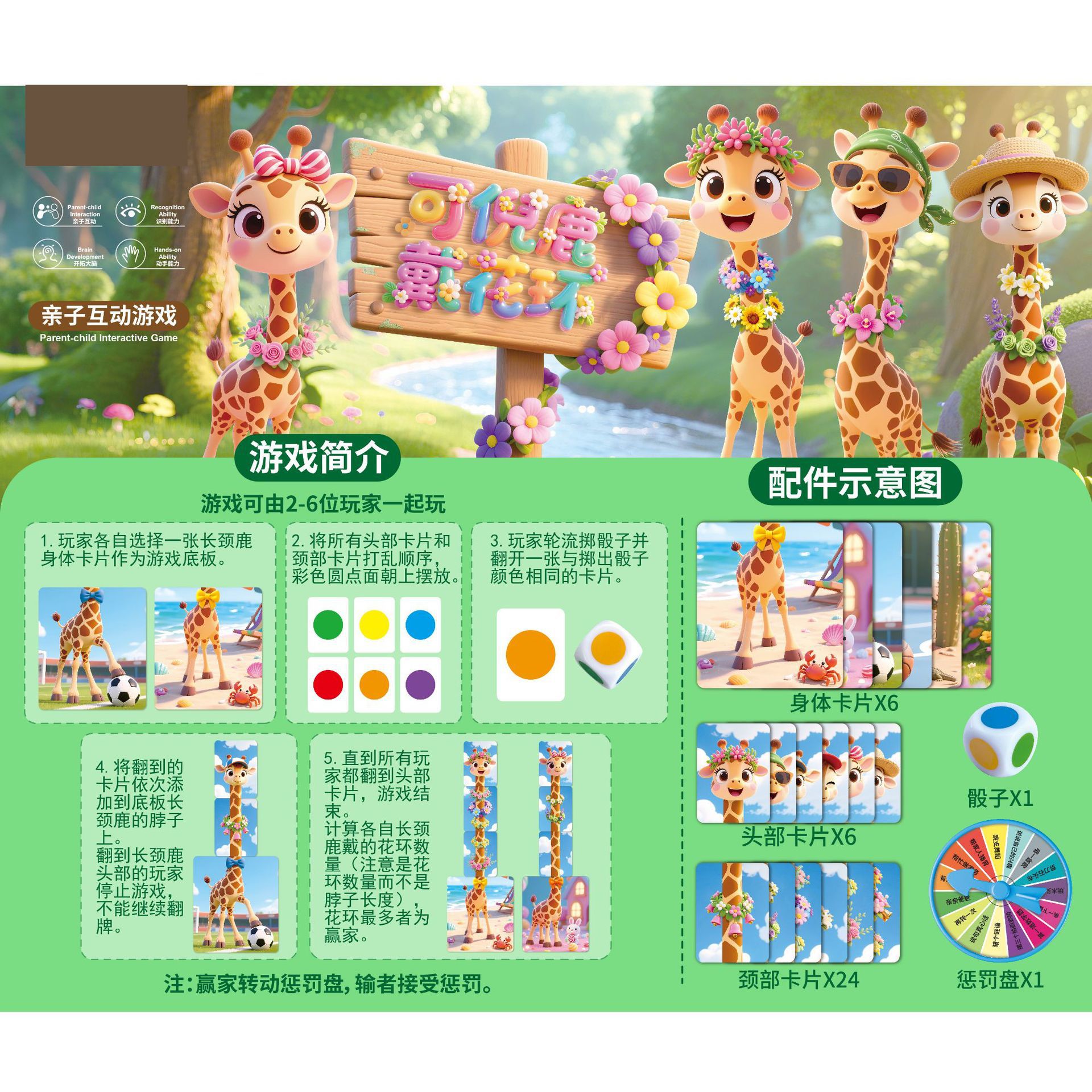 儿童益智长颈鹿戴花环桌面游戏男女孩玩具培训机构积分兑换送礼品