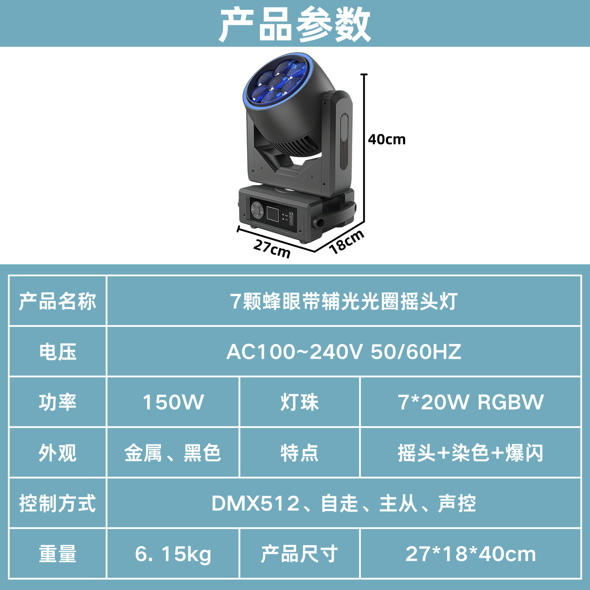 控制方式: DMX512、自走、主从、声控
