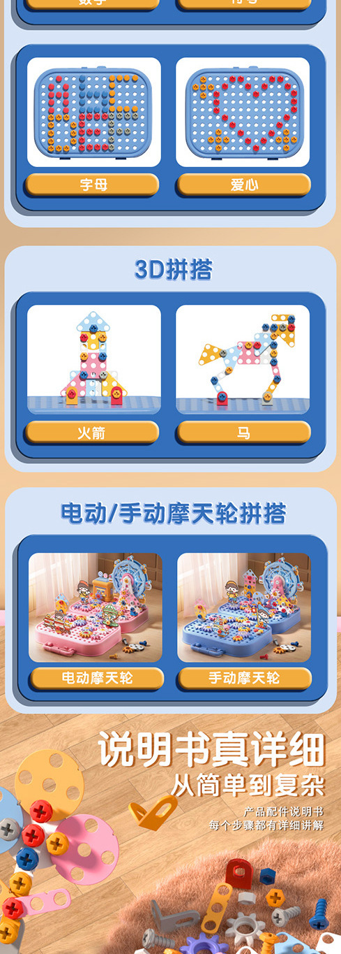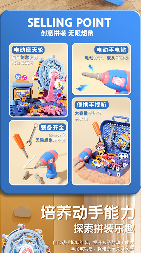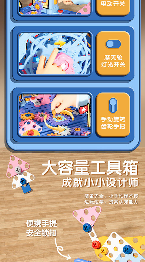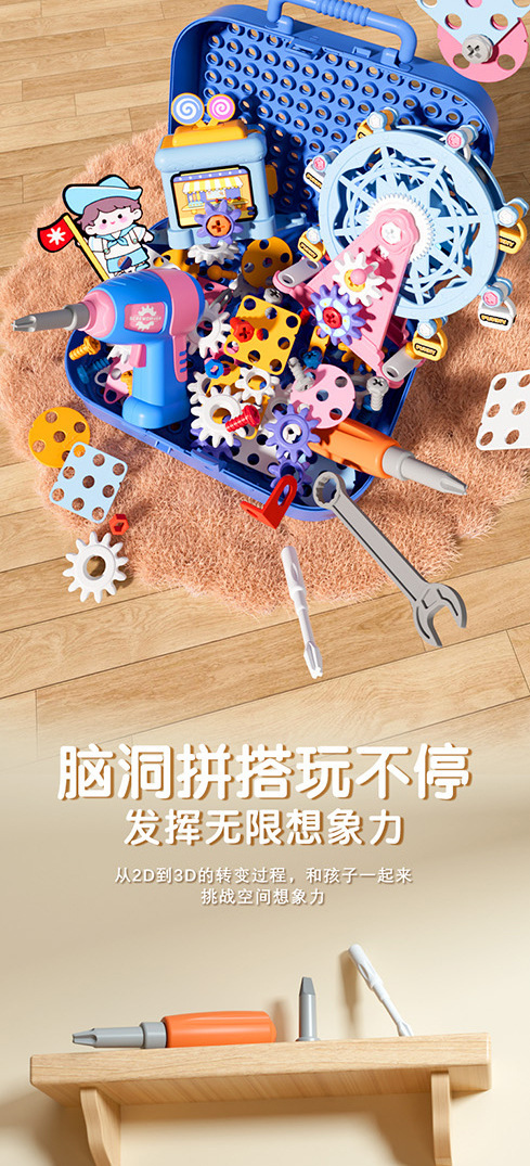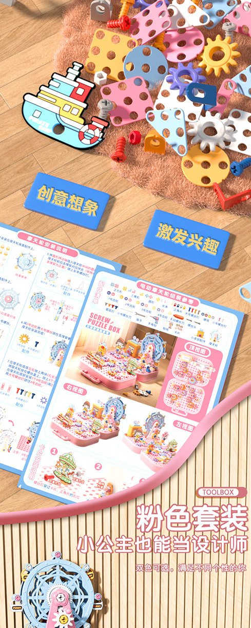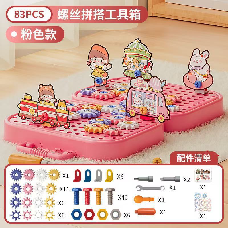材质: 塑料/塑胶 品牌: 锦和 包装方式: 其它,彩盒 拼砌玩具类型: 螺母组合玩具 规格: 详细 适用年龄: 儿童(4-6岁) 产地: 广东省 能力培养: 情感,视觉,智力开发,爬行,动手动脑,抓 货号: CJ-5044368,CJ-504436 是否有动漫形象: 否 专利及著作权: 实用新型 专利及著作权申请时间: 无 是否有导购视频: 是 是否专供外贸: 否 3C配置类别: 14岁以下其它玩具 颜色: 粉色工具箱【83pcs】,粉色工具箱【1 主要下游平台: ebay,亚马逊,wish,速卖通,独立 主要销售地区: 非洲,欧洲,南美,东南亚,北美,东北亚, 有可授权的自有品牌: 是 是否跨境出口专供货源: 是