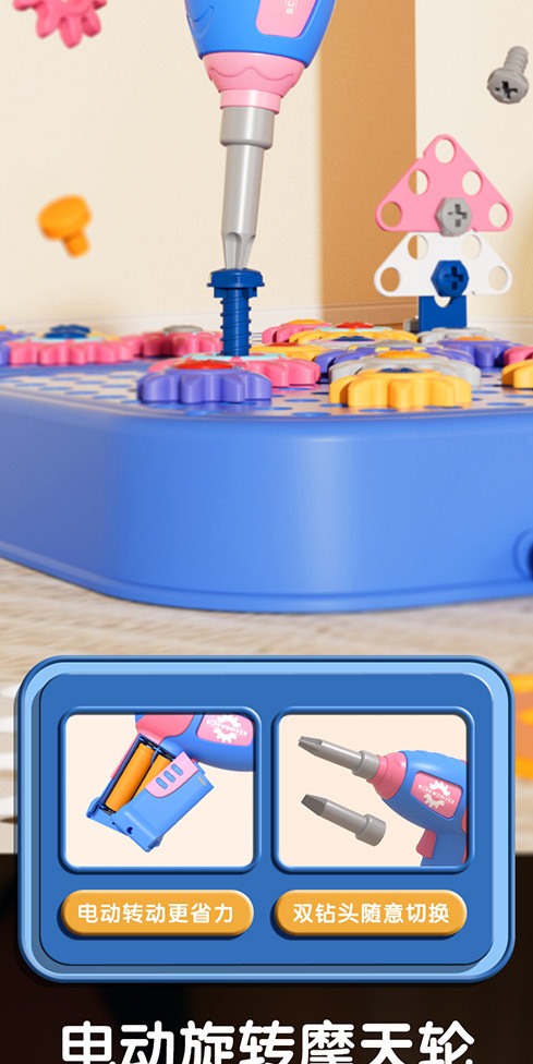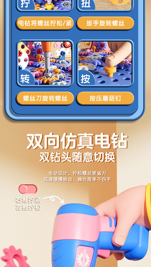 仿真拧螺丝钉工具箱 电钻DIY动手拆卸电钻组装拼益智男孩儿童玩具