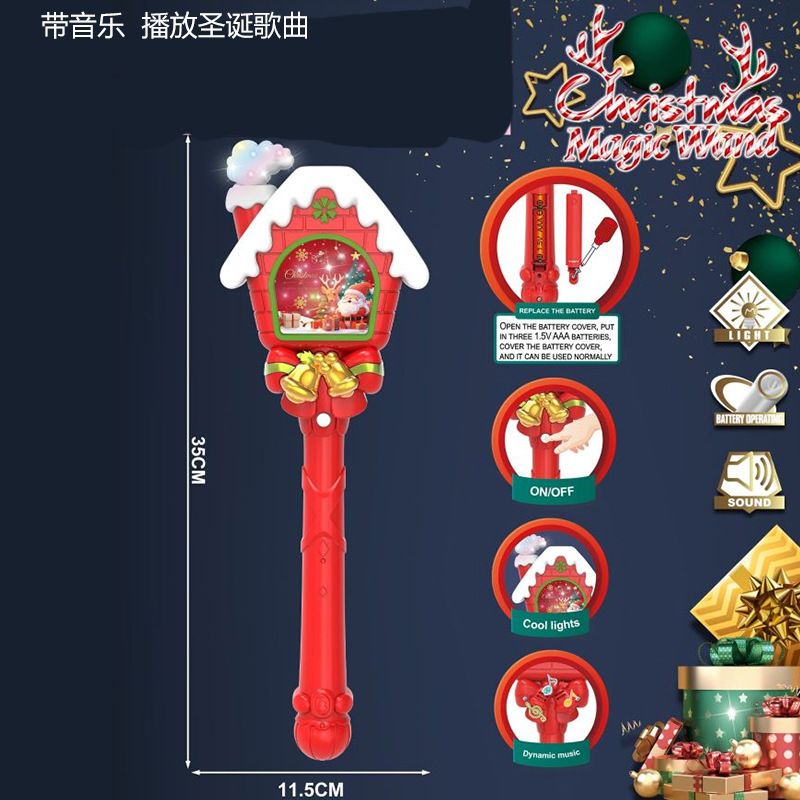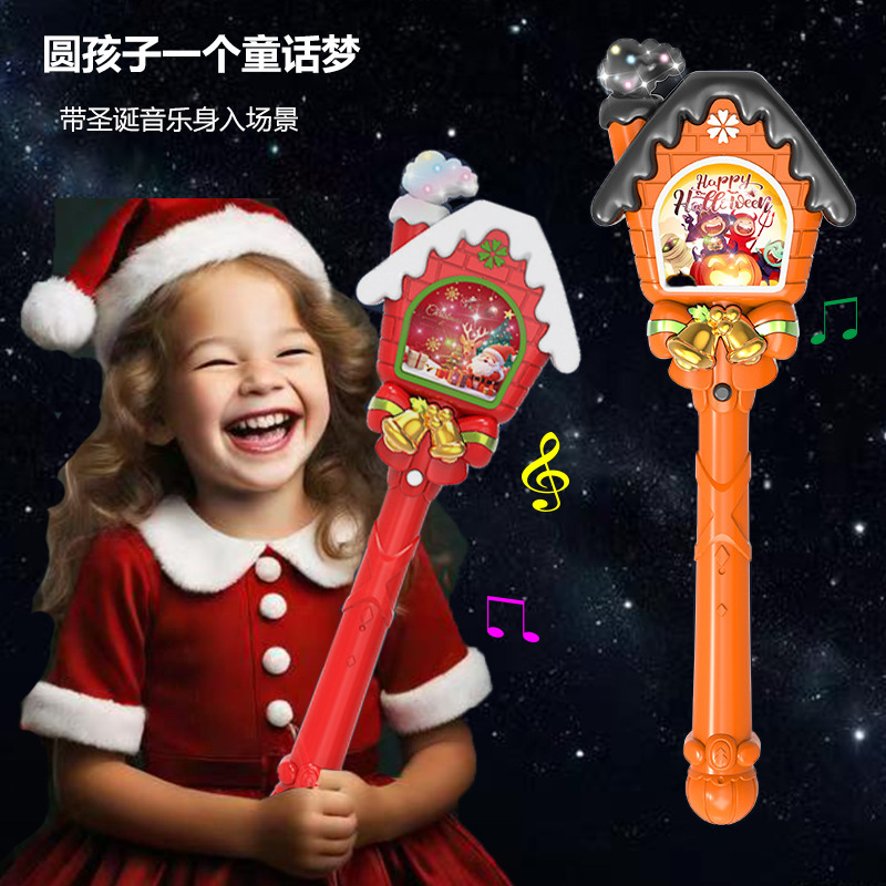 2025新款屋子圣诞发光棒带灯光音乐魔法棒万圣闪光棒手持玩具礼物