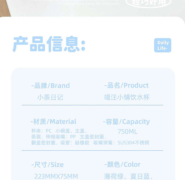 品名:喵汪小铺双饮水杯