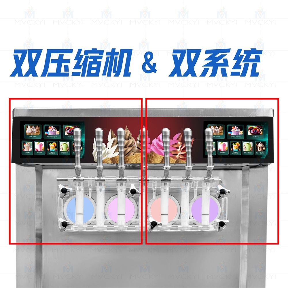 创新双系统设计,搭配双压缩机,可同时制作冰淇淋与冷饮,一机两用,提升设备利用率与经营灵活性。