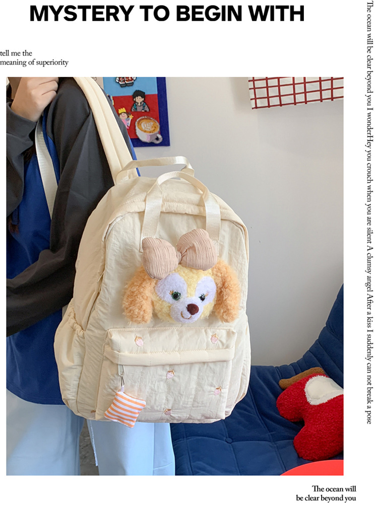材质: 毛绒 里料质地: 尼龙 功能: 其它,透气,防盗,减负 风格: 青春校园 开盖方式: 拉链 品牌: 其他 流行元素: 其它,刺绣,羽绒,蝴蝶结,印花,撞色 颜色: 浅紫色,浅黄色 货号: 玩偶羽绒双肩包 上市年份季节: 2026年春季 包内部结构: 夹层拉链袋 硬度: 软 外袋种类: 内贴袋 有可授权的自有品牌: 否 有无夹层: 无 适用场景: 日常搭配 主要卖点: 便携收纳 风格定位: 清新甜美 流行趋势: 潮流百搭 包大小: 大 重量: 0.38 kg/个
