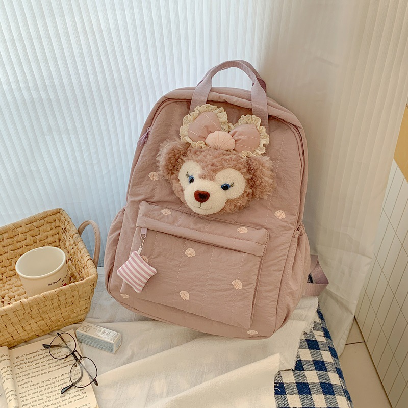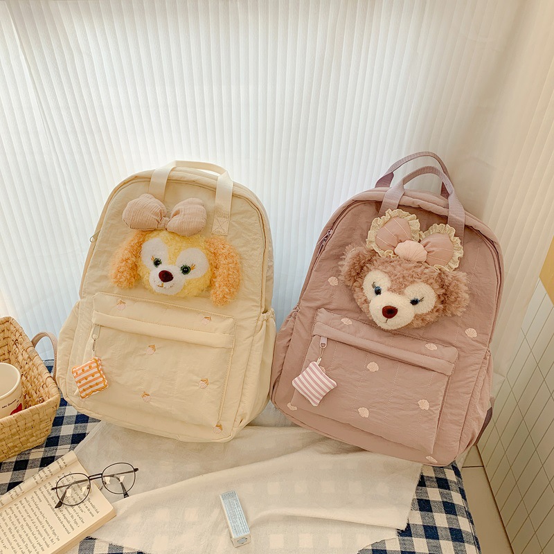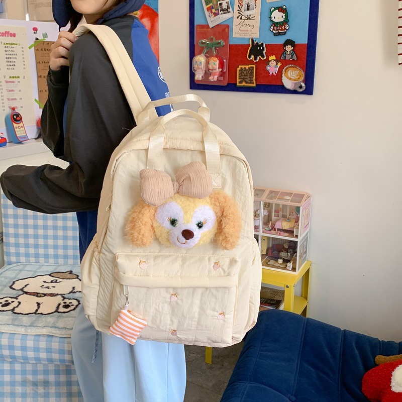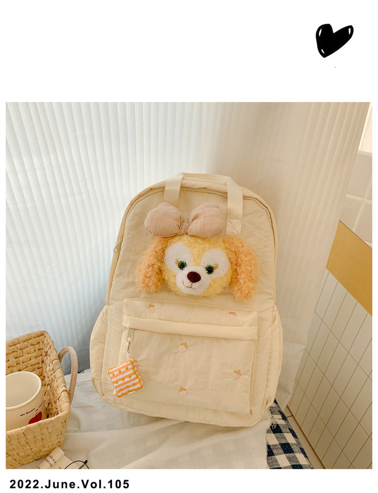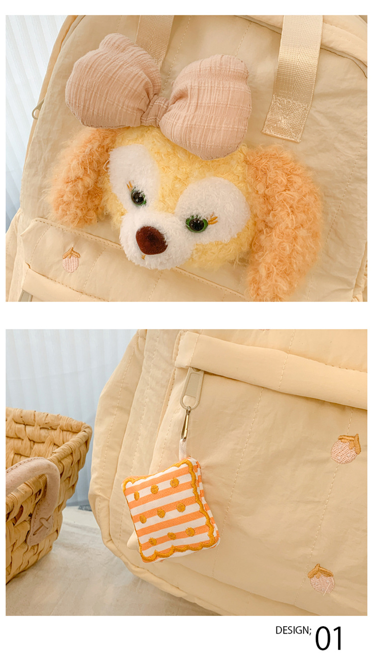 双肩包黄色卡通小熊背包女旅游轻便高级感大学生高质感刺绣书包