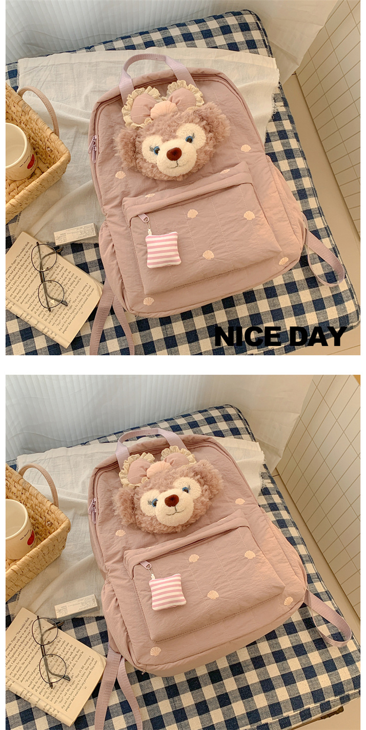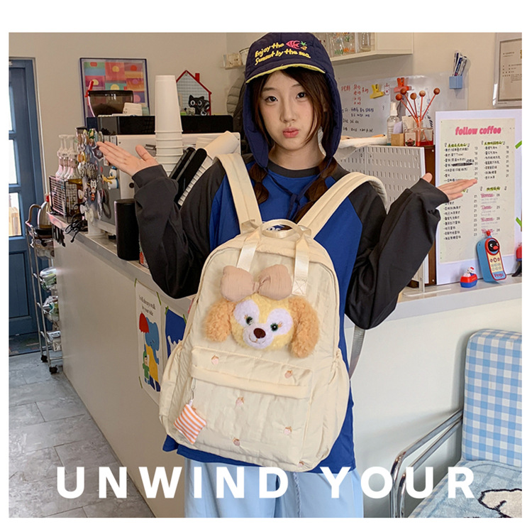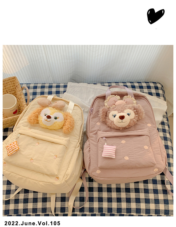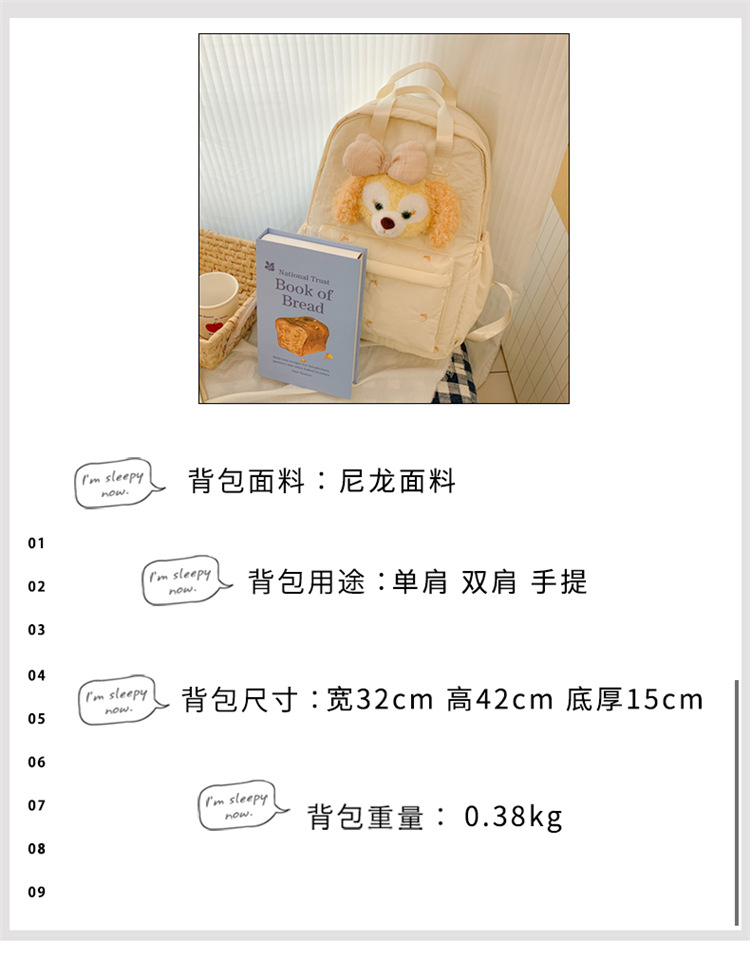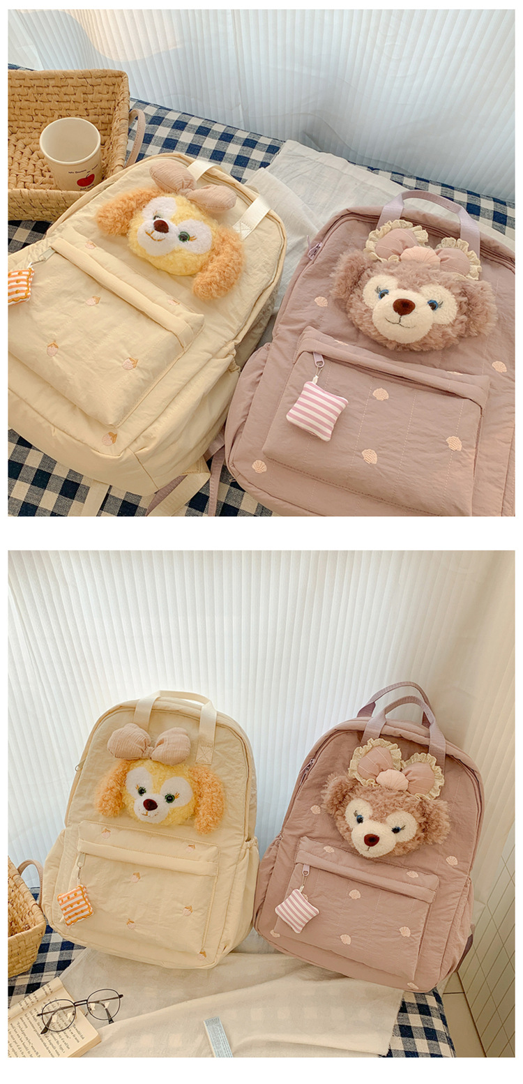 双肩包黄色卡通小熊背包女旅游轻便高级感大学生高质感刺绣书包 投诉