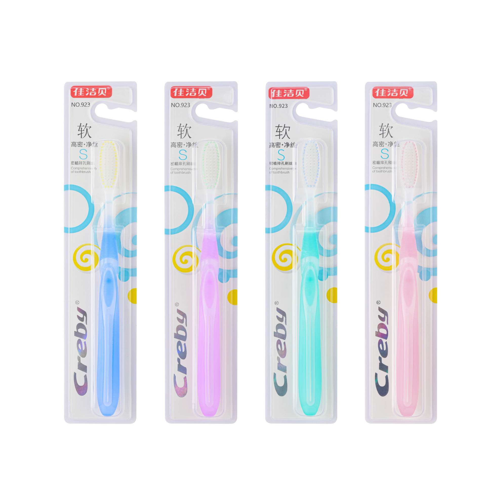 品牌: Creby/佳洁贝 功能: 清洁 规格: 30支*10盒 是否一次性: 否 适用人群: 成人 是否进口: 否 型号: 佳洁贝NO.923 箱装数量: 300支 产品上市时间: 2019 单位: 支 货号: NO.923 产品类别: 手动 产地: 中国大陆 是否量贩装: 否 颜色: 佳洁贝NO.923 是否跨境出口专供货源: 否 专利类型: 无 刷柄材质: PP+TPR 刷毛规格: 0.18mm 刷毛材质: PBT 重量: 0.5 kg/支