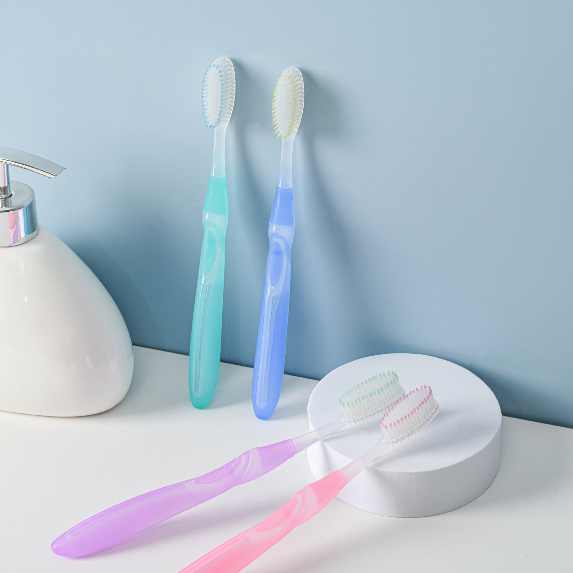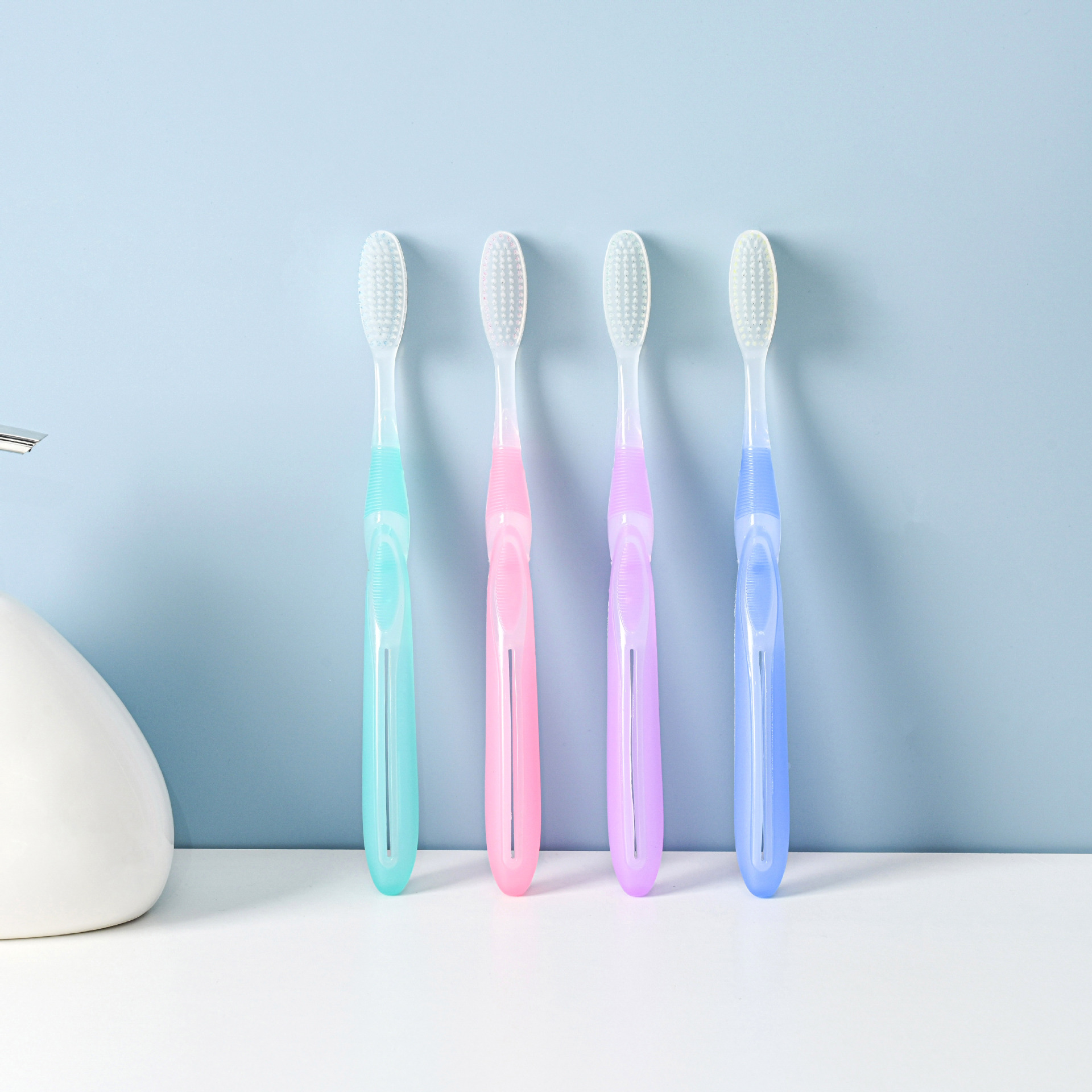 佳洁贝日用百货软毛牙刷2元店专批牙刷软毛成人TPR软胶柄牙刷厂家