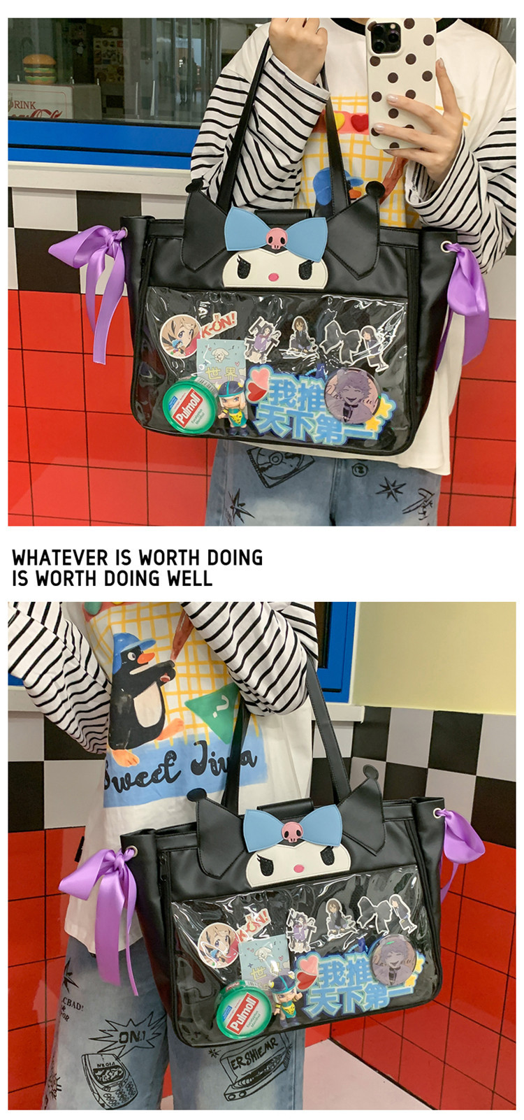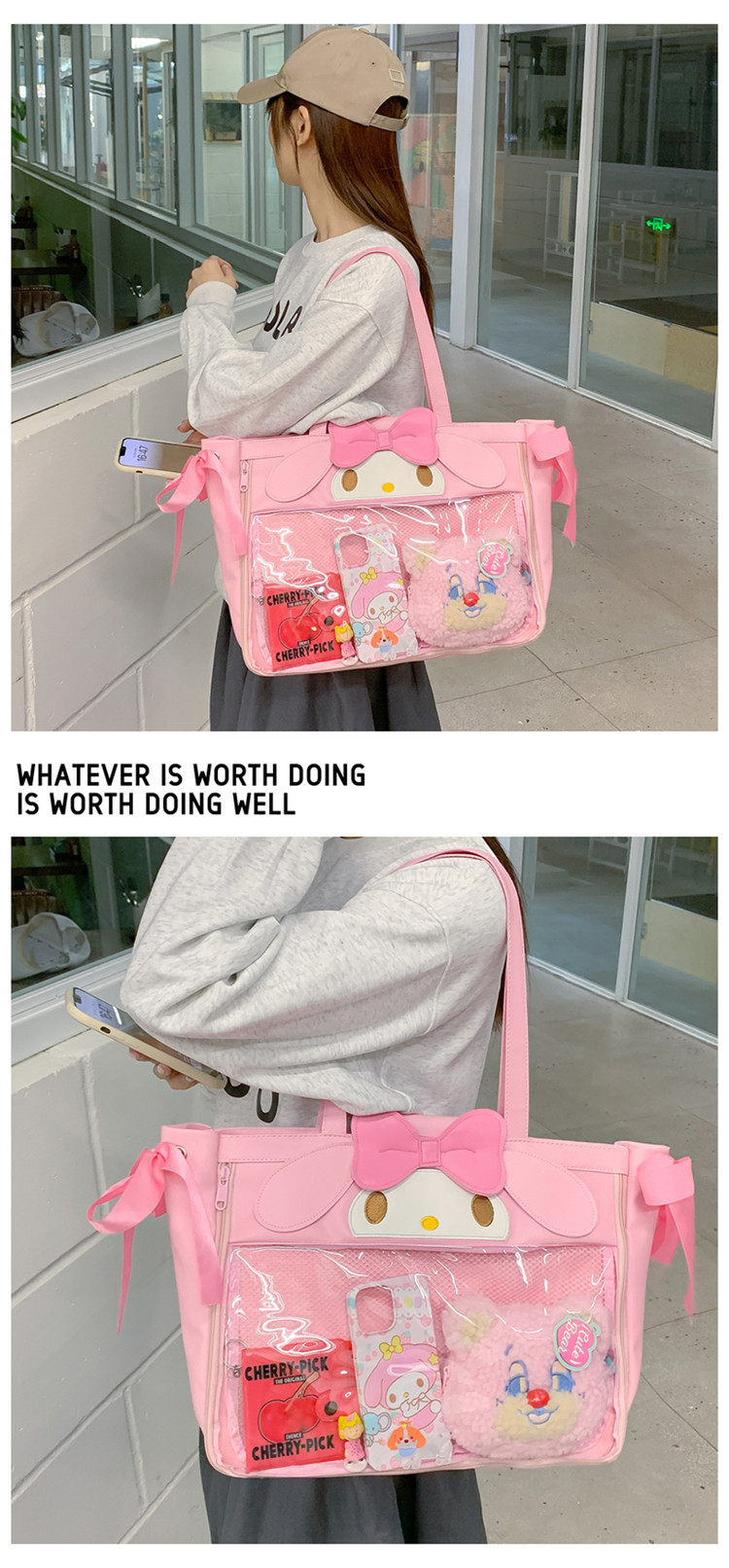 卡通小恶魔女生收纳大包2025新款凯蒂猫pu皮大容量女生手提单肩包 投诉