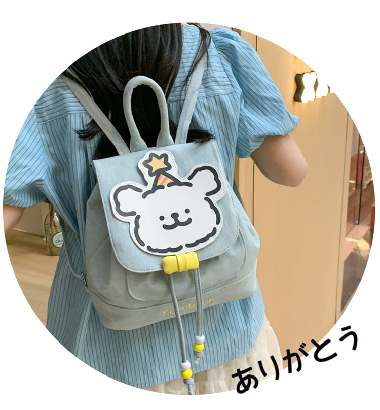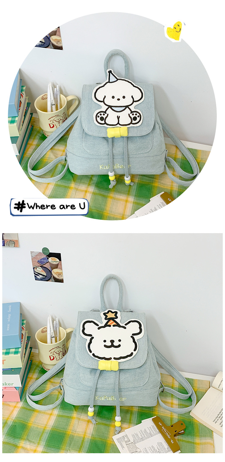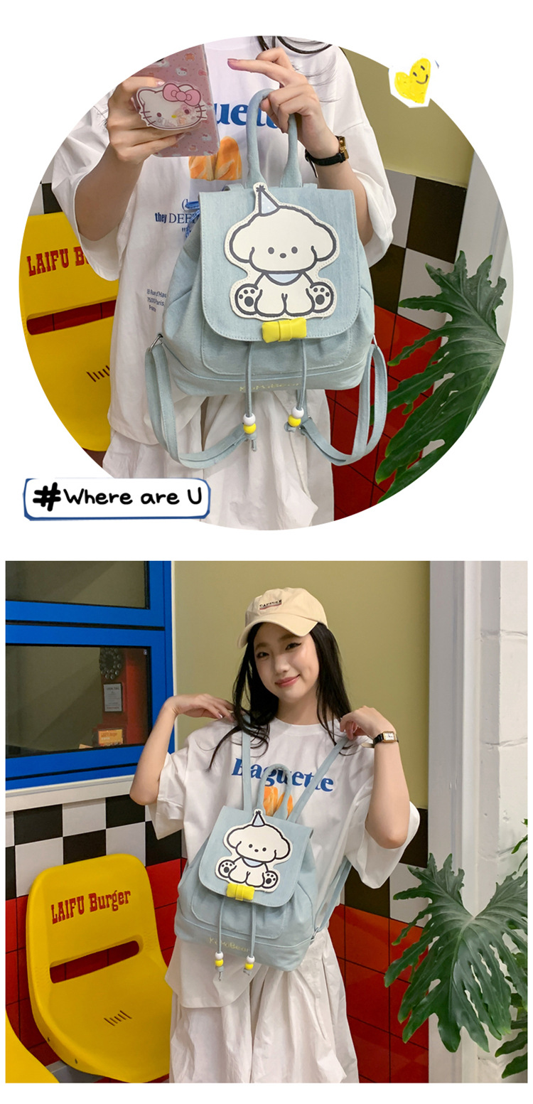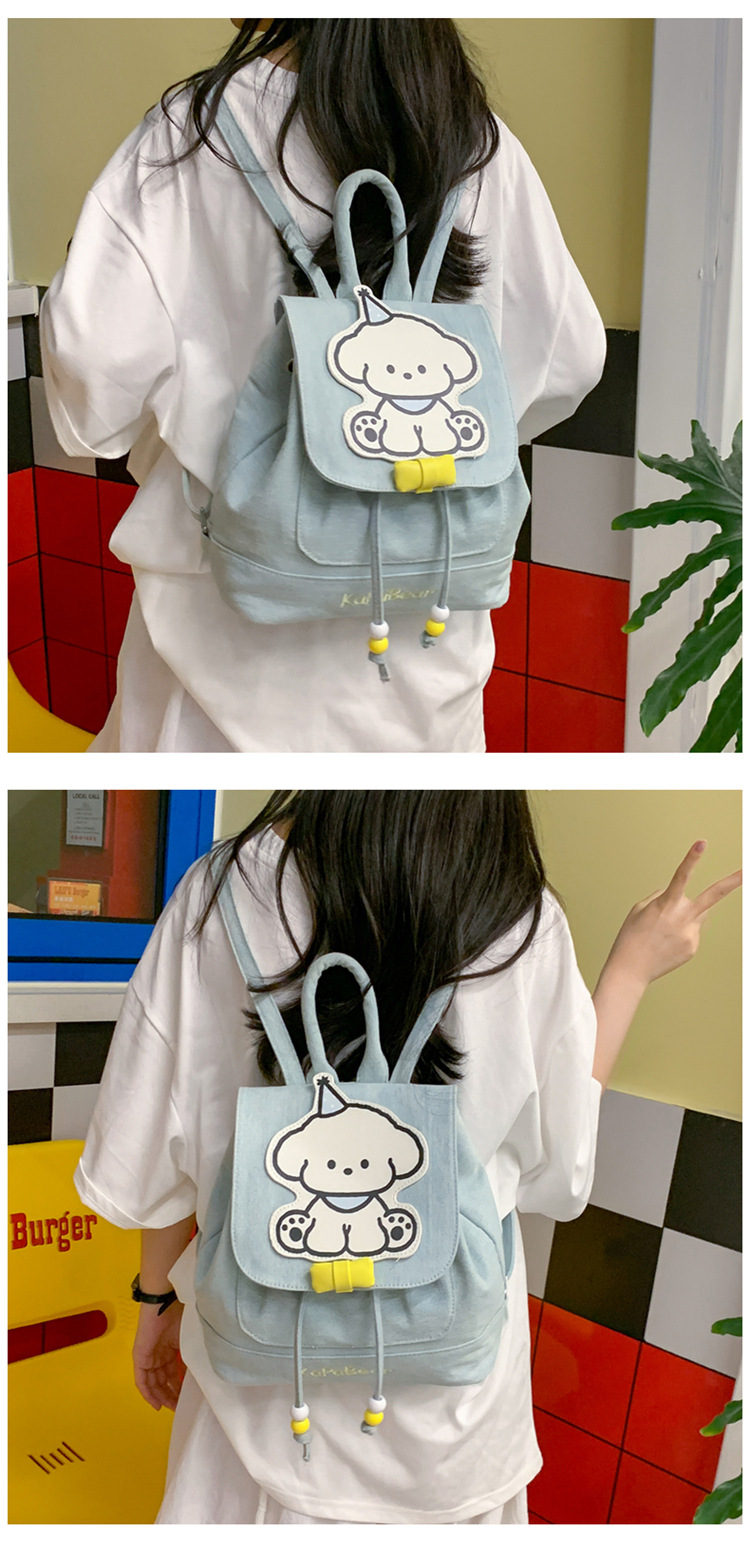 日系ins可爱小狗双肩包女生休闲背包校园感学生抽绳翻盖收纳书包 投诉
