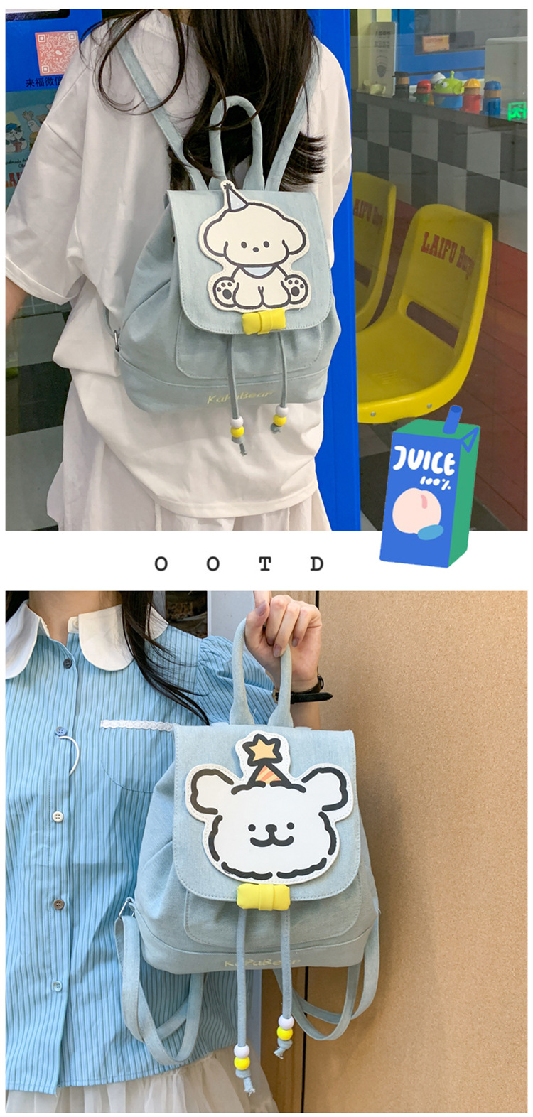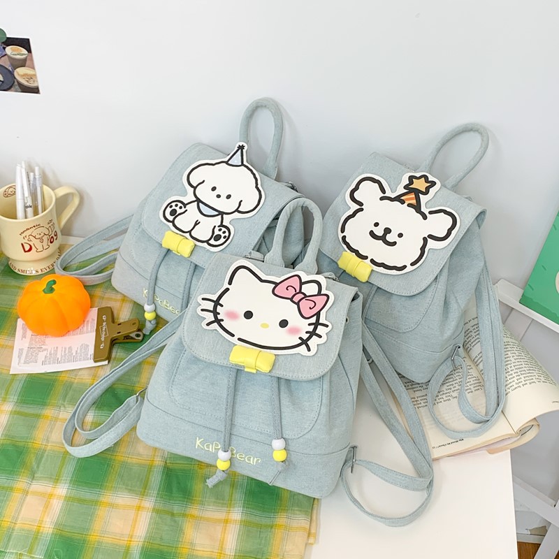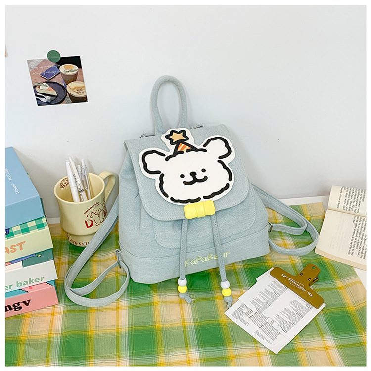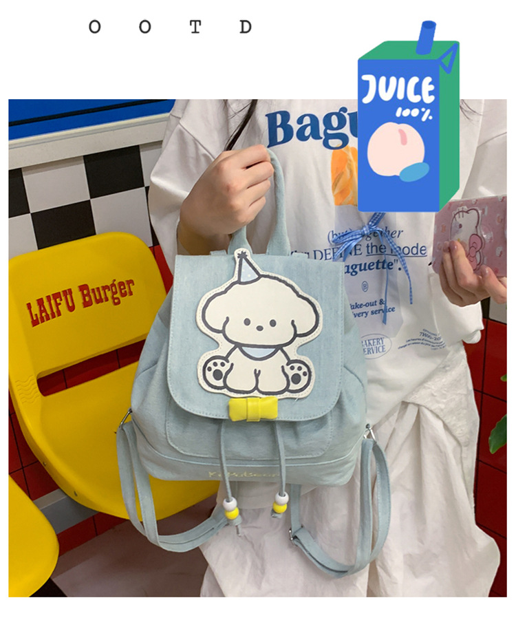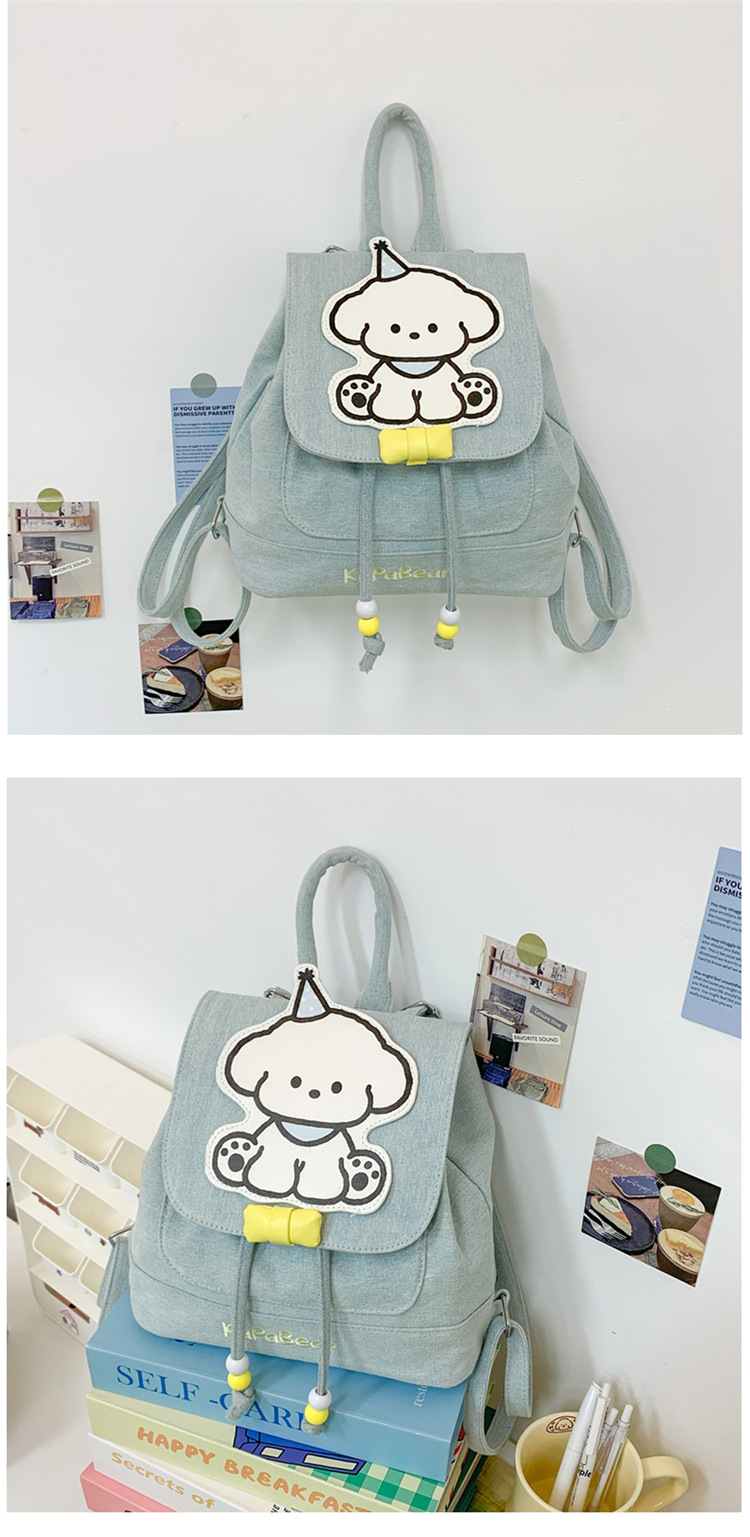 日系ins可爱小狗双肩包女生休闲背包校园感学生抽绳翻盖收纳书包 投诉