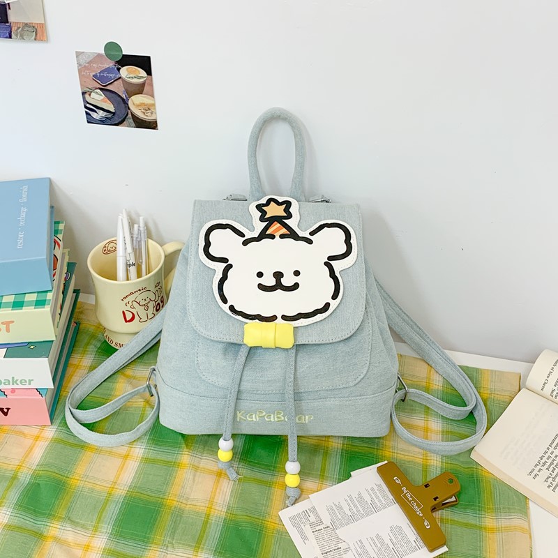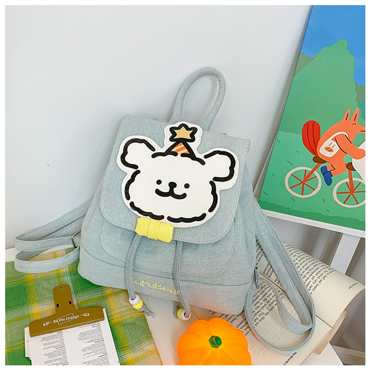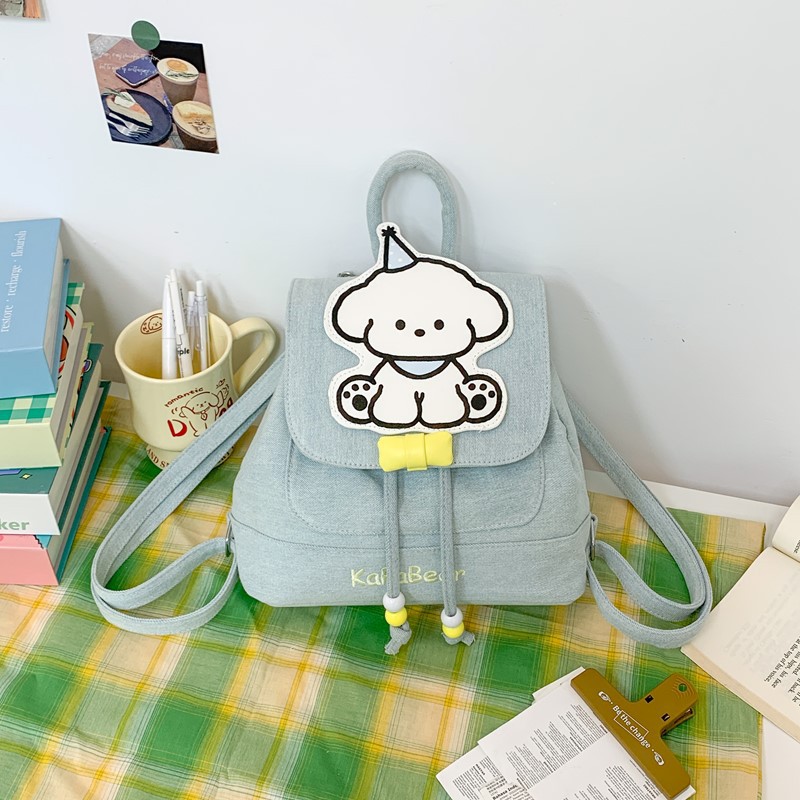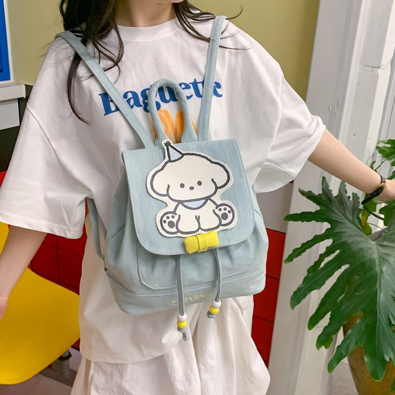 日系ins可爱小狗双肩包女生休闲背包校园感学生抽绳翻盖收纳书包