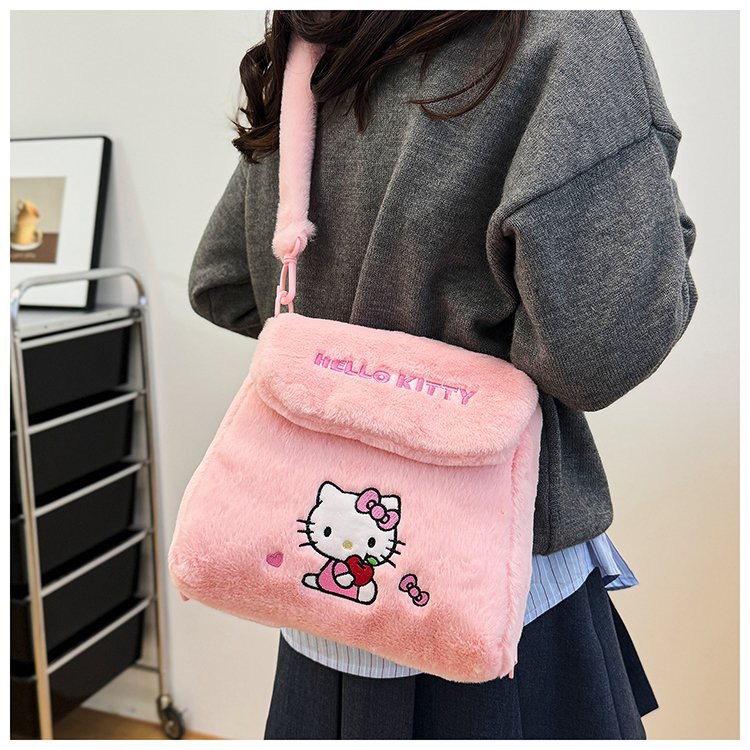 高颜值可爱毛绒包包韩系新款卡通猫咪单肩包大容量休闲通勤斜挎包