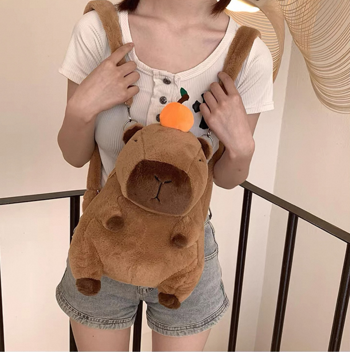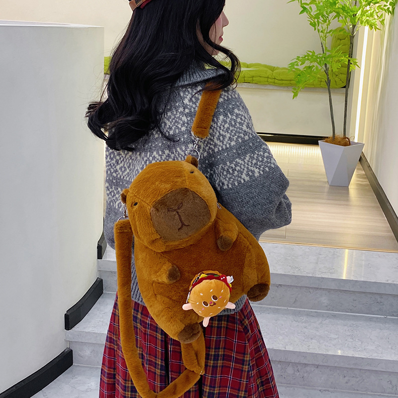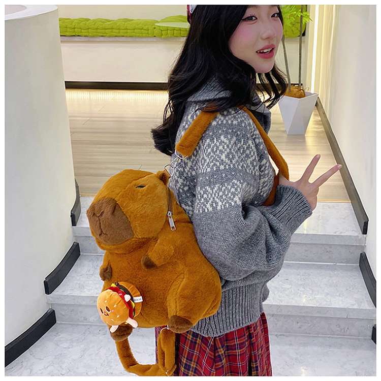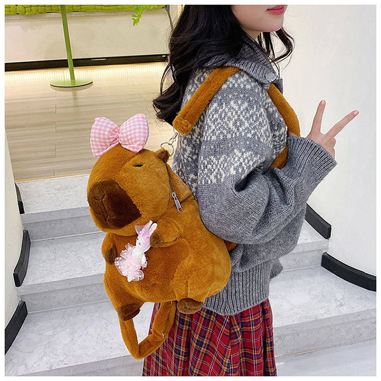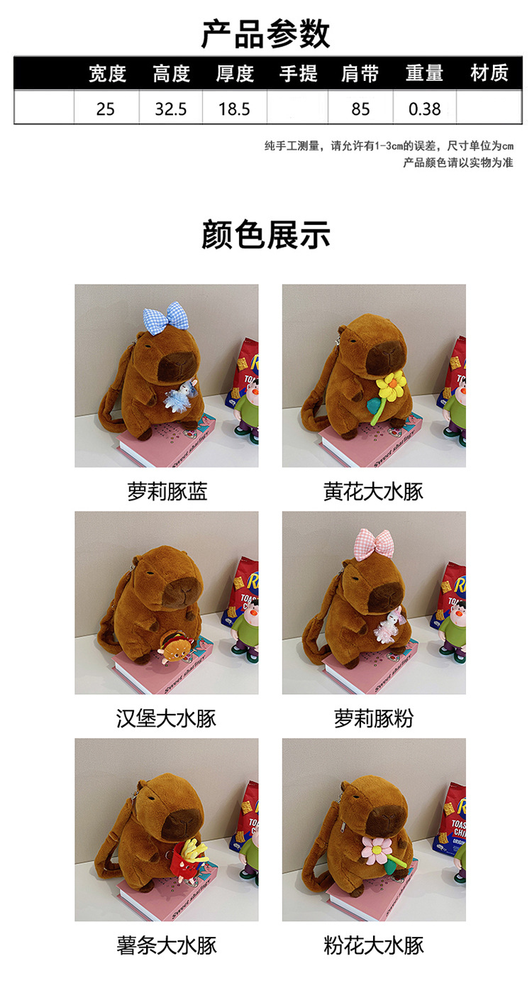 卡皮巴拉毛绒包双肩包水豚可爱动物礼物玩偶背包卡通公仔娃娃包 投诉
