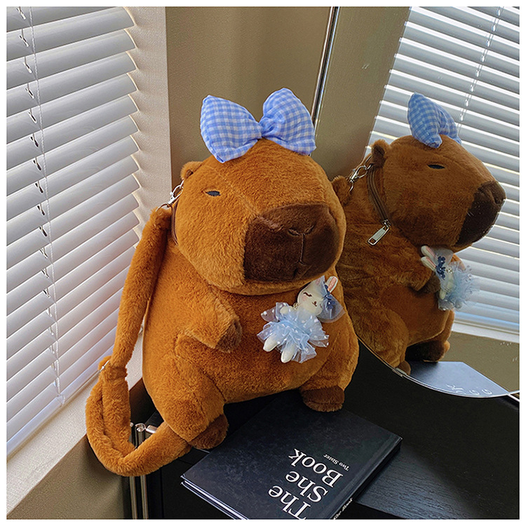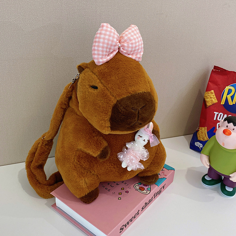 卡皮巴拉毛绒包双肩包水豚可爱动物礼物玩偶背包卡通公仔娃娃包