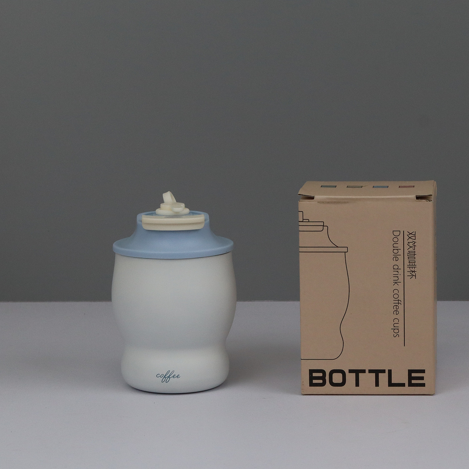 杯盖为食品级PP材质,小巧杯身280ml的容量,杯身真空保冷保热