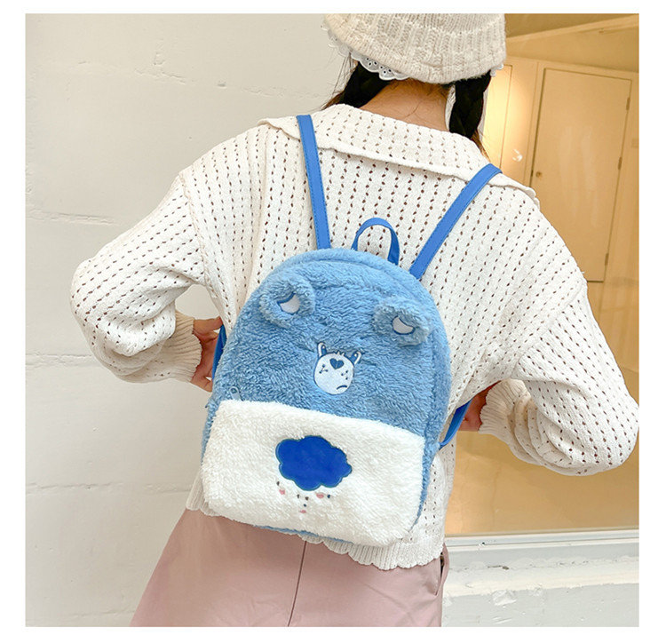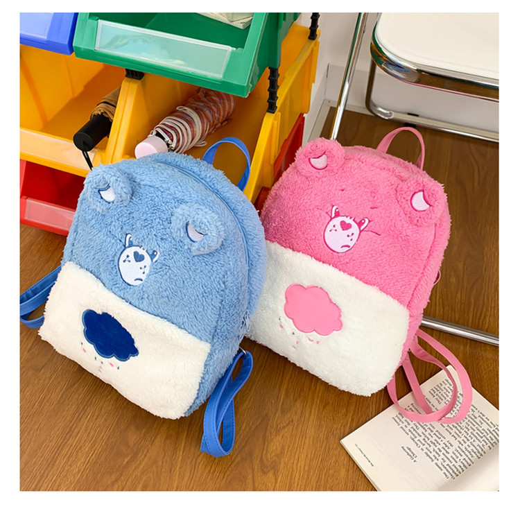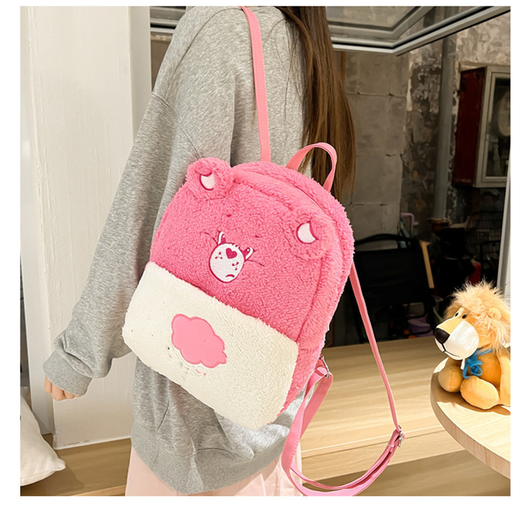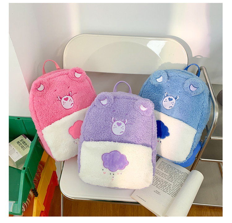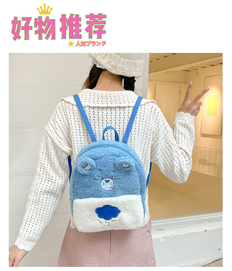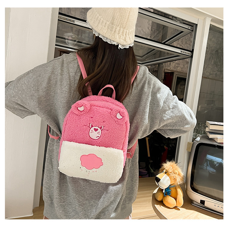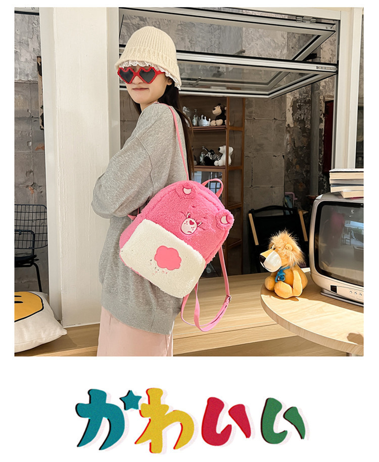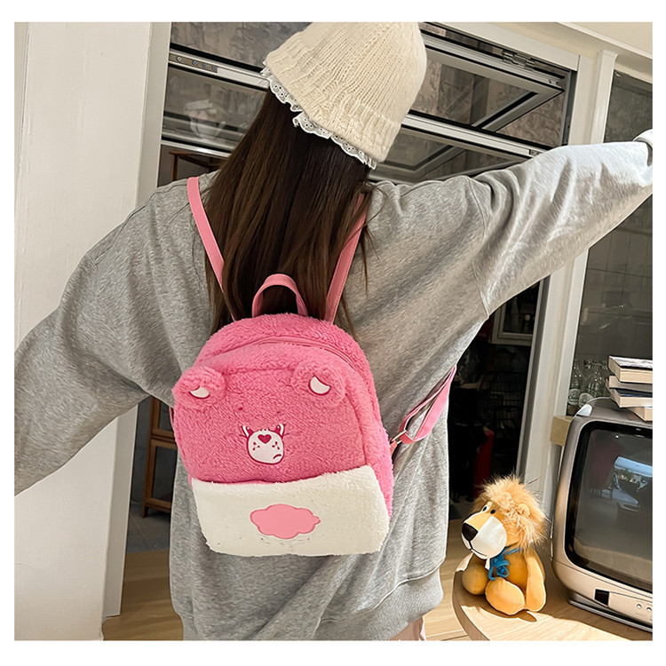 2024新款爱心小熊毛茸茸双肩包可爱个性毛绒书包卡通学生小背包 投诉