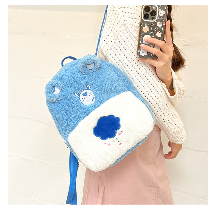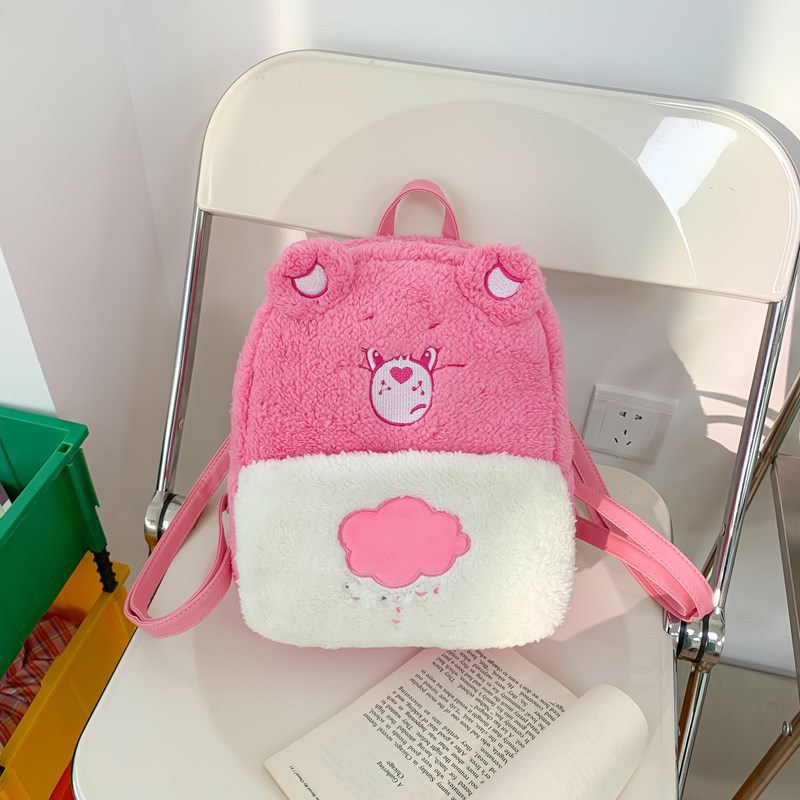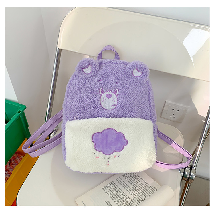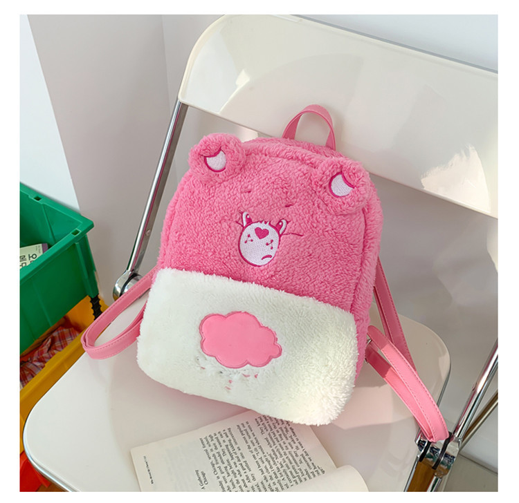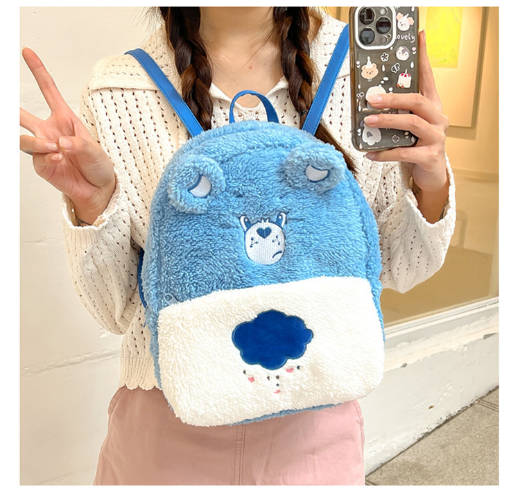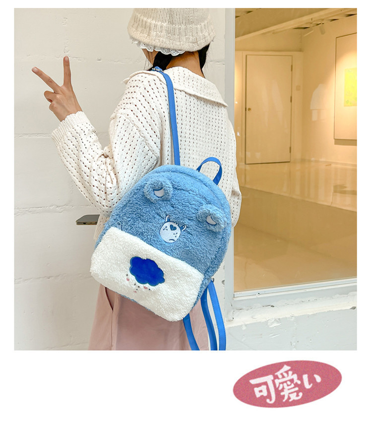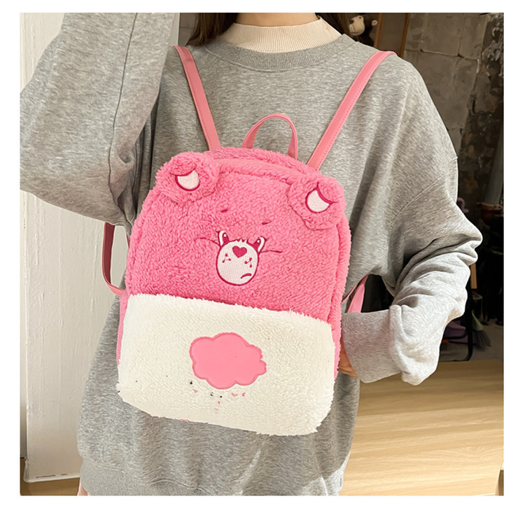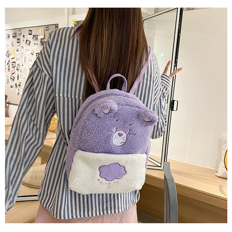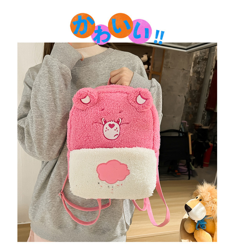 2024新款爱心小熊毛茸茸双肩包可爱个性毛绒书包卡通学生小背包 投诉