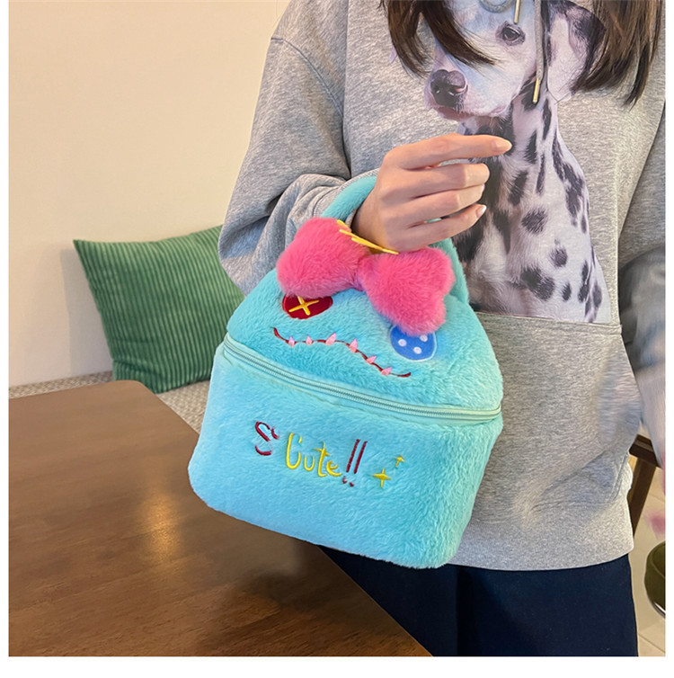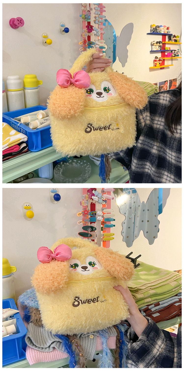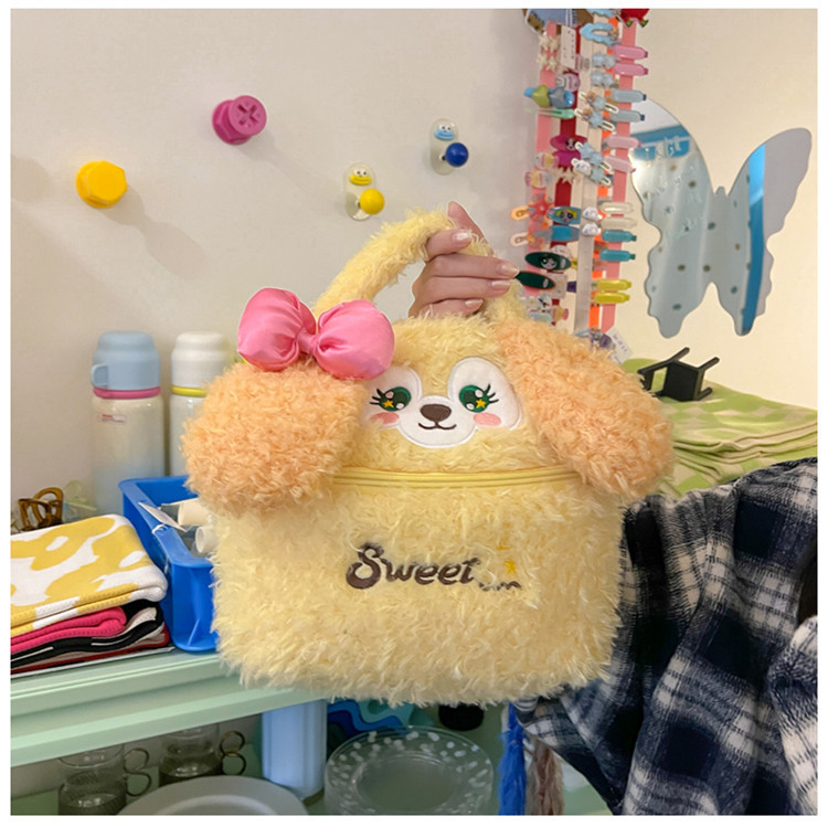 少女心可爱卡通毛绒厨师狗手拎包多功能大容量收纳包手提化妆包