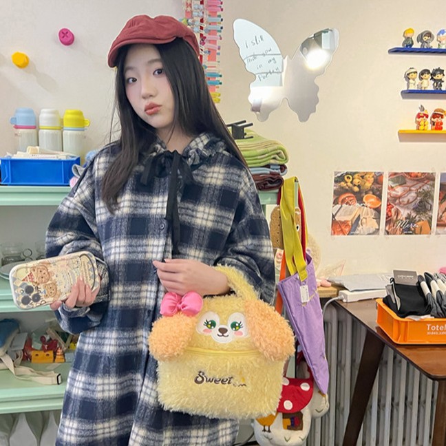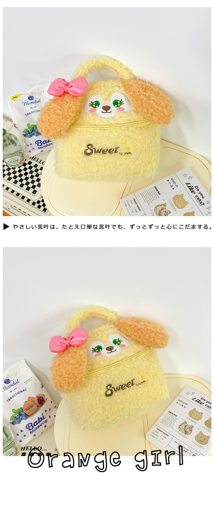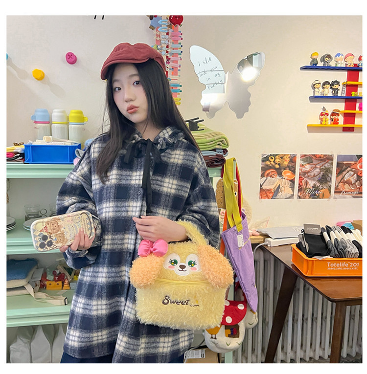 少女心可爱卡通毛绒厨师狗手拎包多功能大容量收纳包手提化妆包 投诉