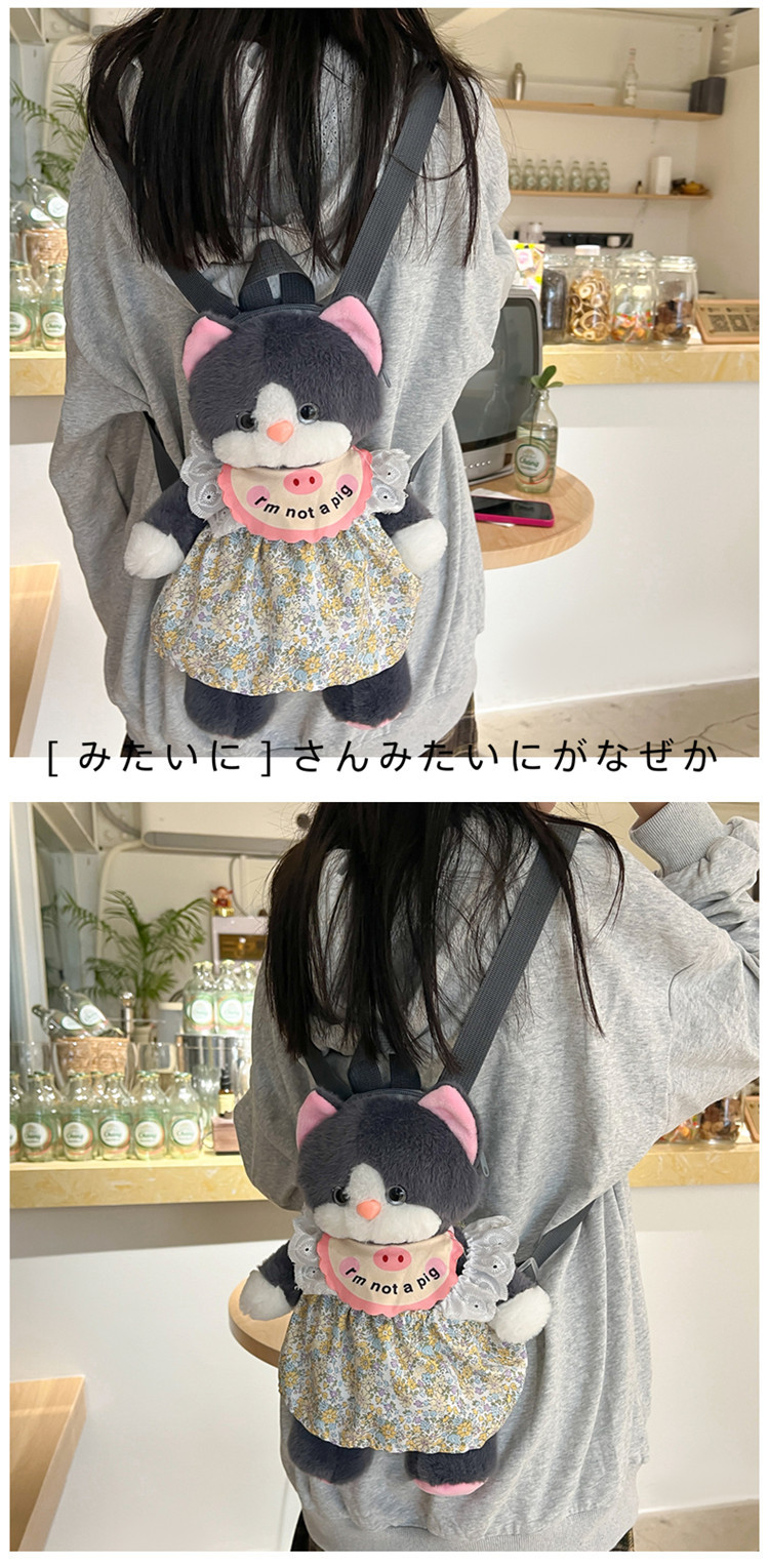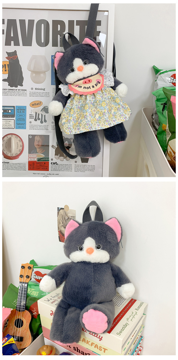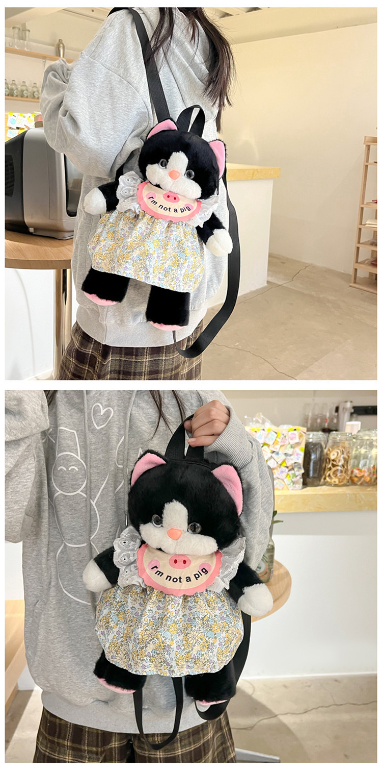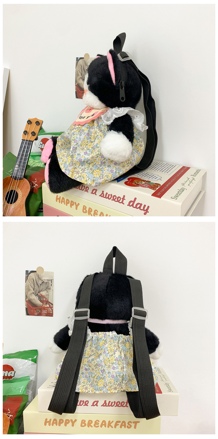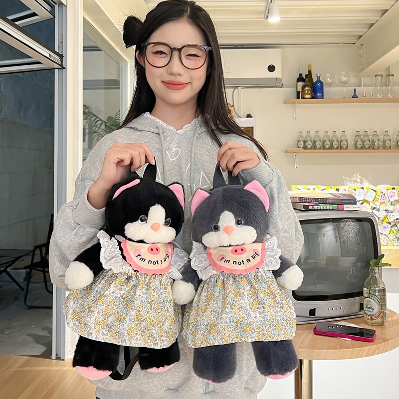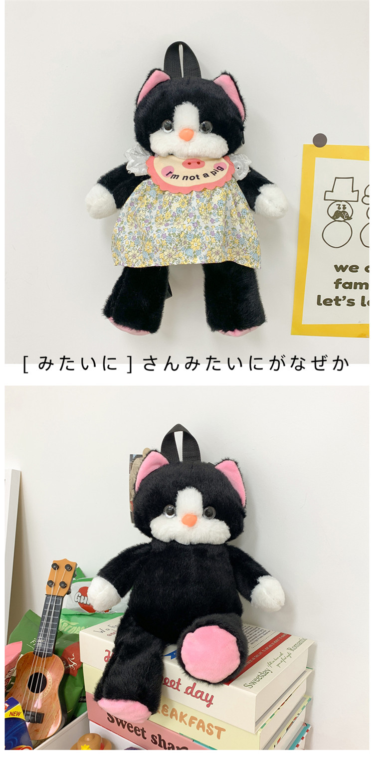 可爱裙子黑猫毛绒玩具双肩包2024新款个性玩偶背包卡通双肩包礼物 投诉