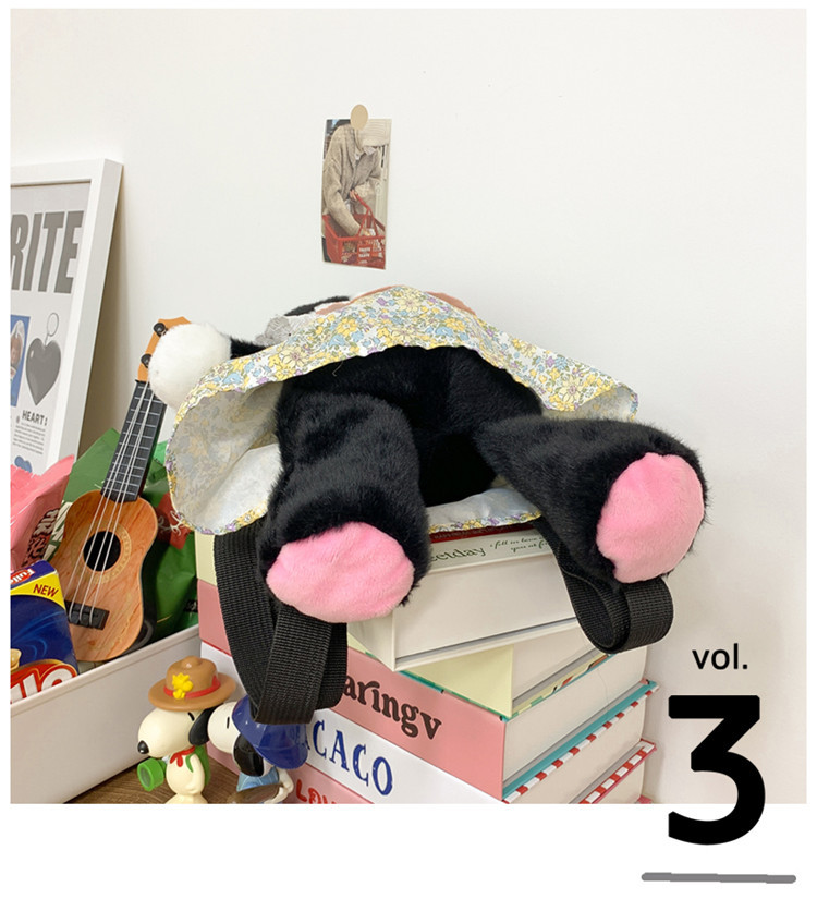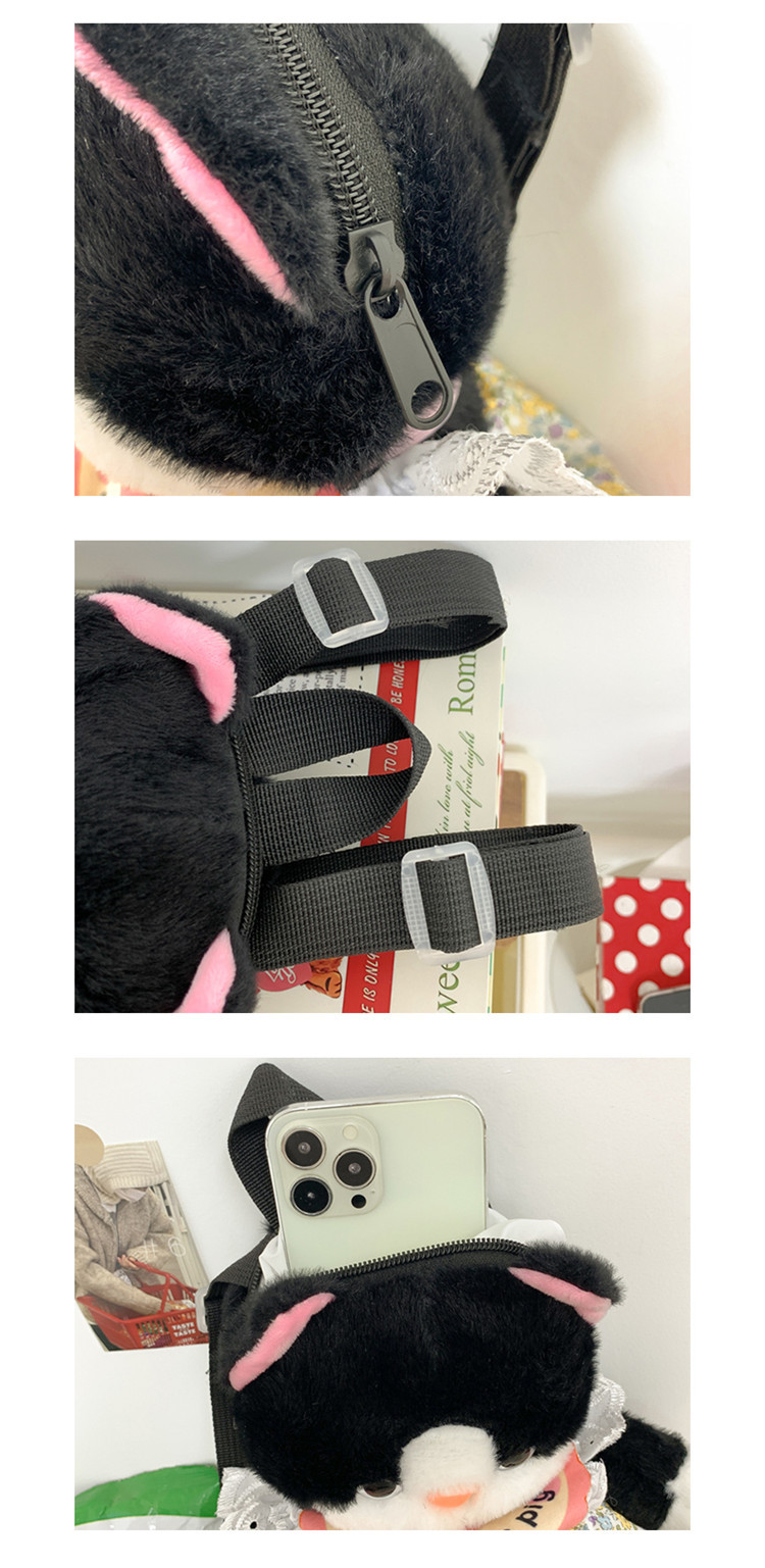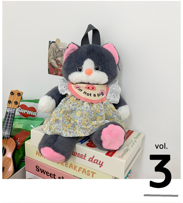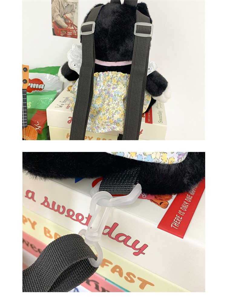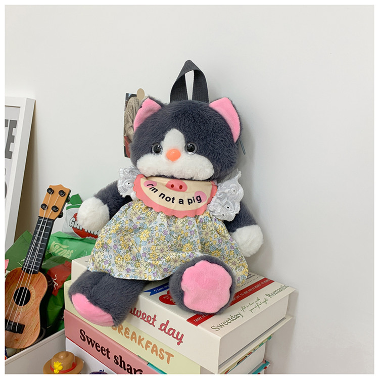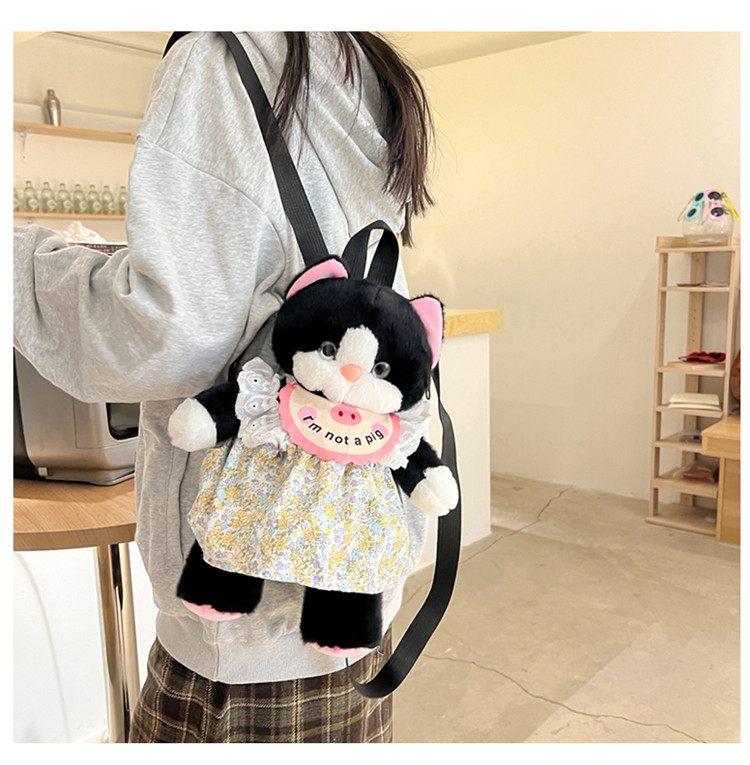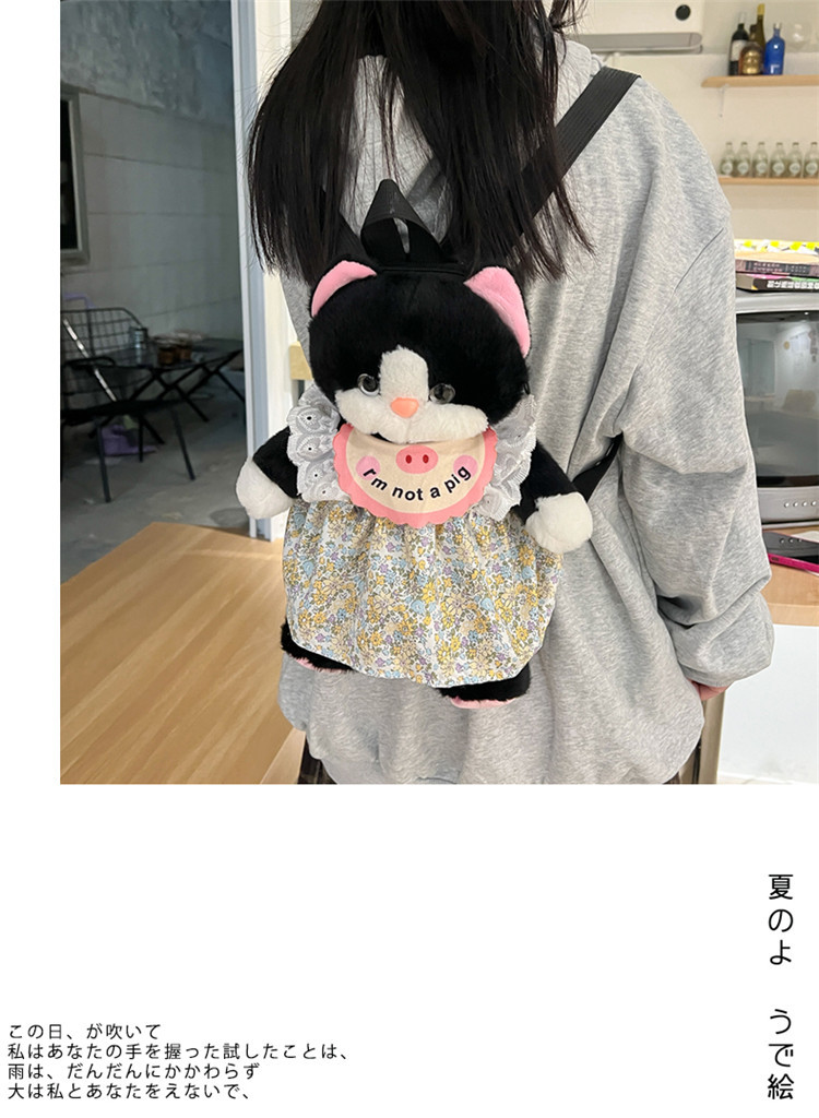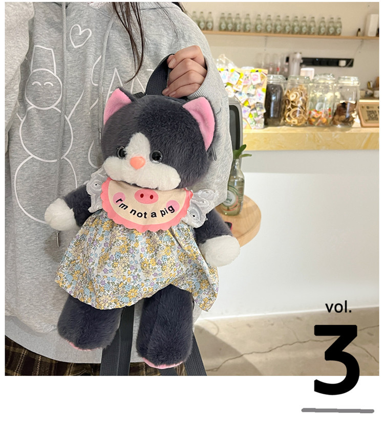 可爱裙子黑猫毛绒玩具双肩包2024新款个性玩偶背包卡通双肩包礼物 投诉