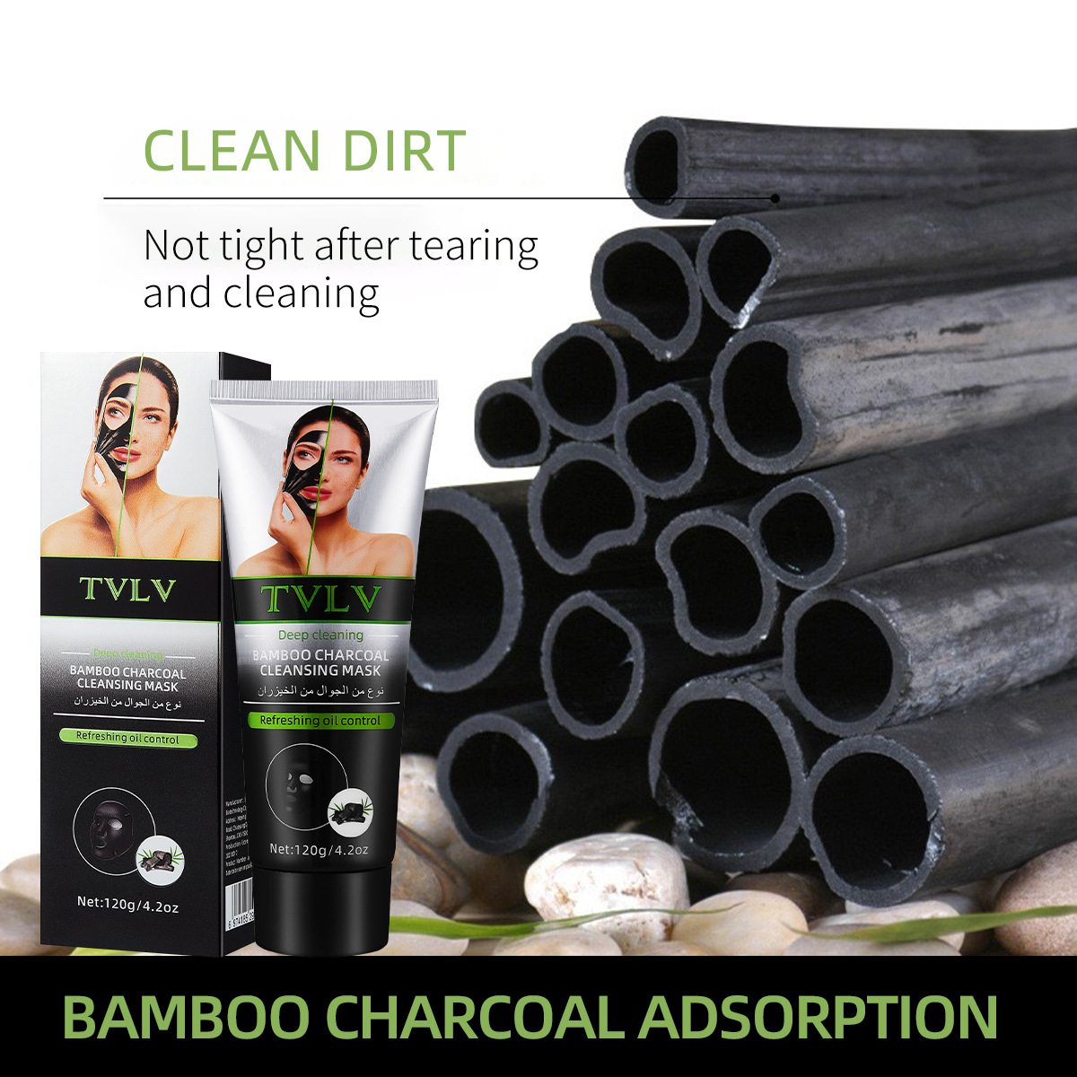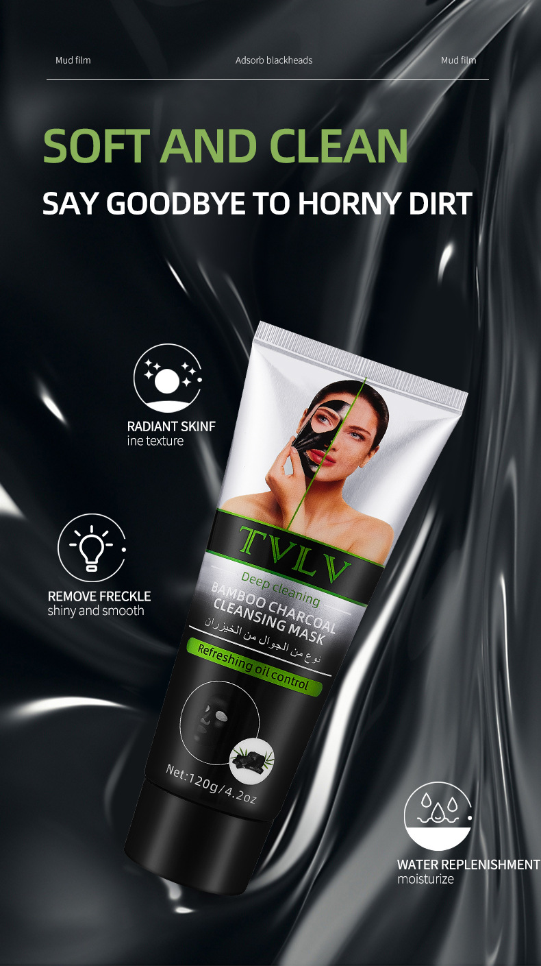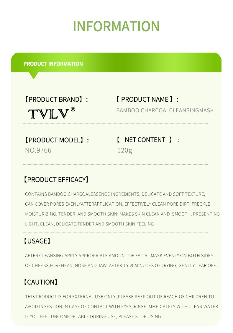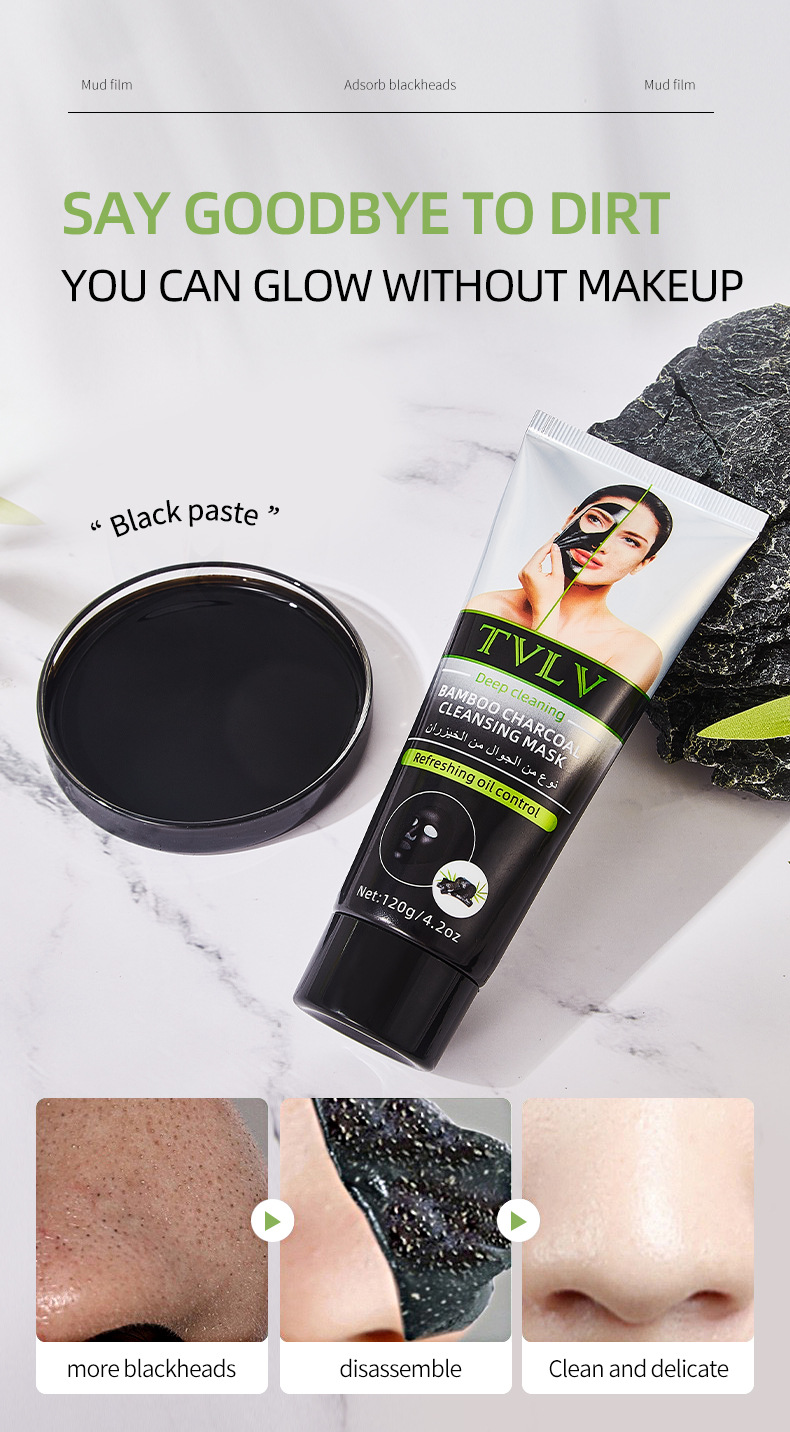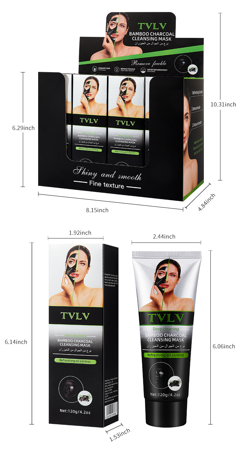 跨境全英文TVLV竹炭清洁面膜提亮肤色涂抹式补水卸妆深层清洁面膜专供出口 English | 投诉