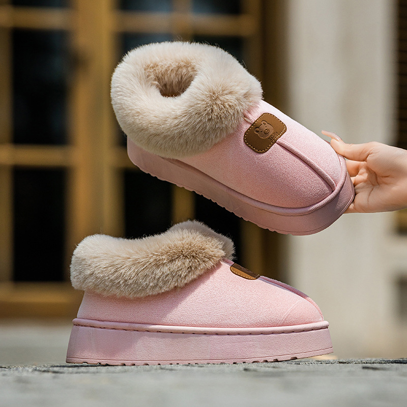棉鞋女士秋冬季加绒加厚麂皮绒保暖外穿高帮保暖居家用包跟棉拖鞋 English | 投诉