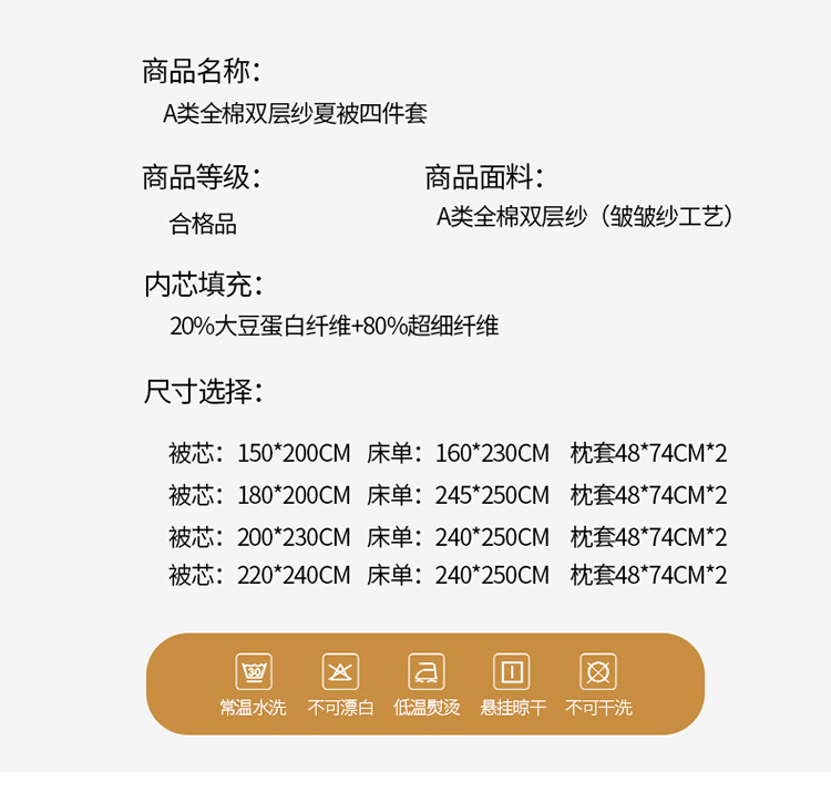 | 2*2.3m夏被四件套 | ¥22200 | 998套可售 |