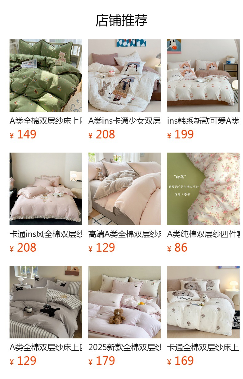 | 200x230cm单件被套 | ¥9900 | 2687床可售 |