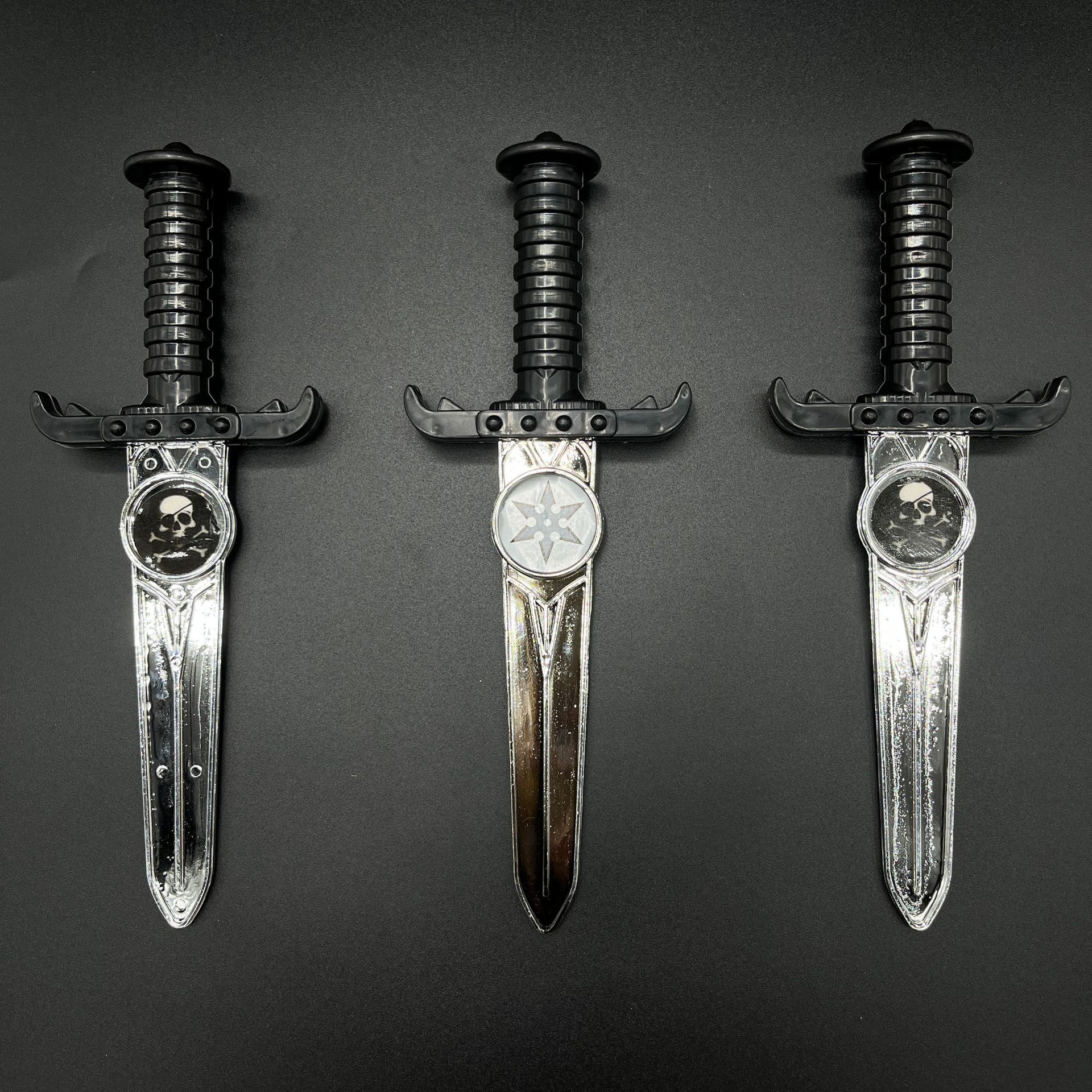 跨境热卖塑料电镀刀剑海盗刀匕首万圣节表演武器道具玩具骷髅刀剑