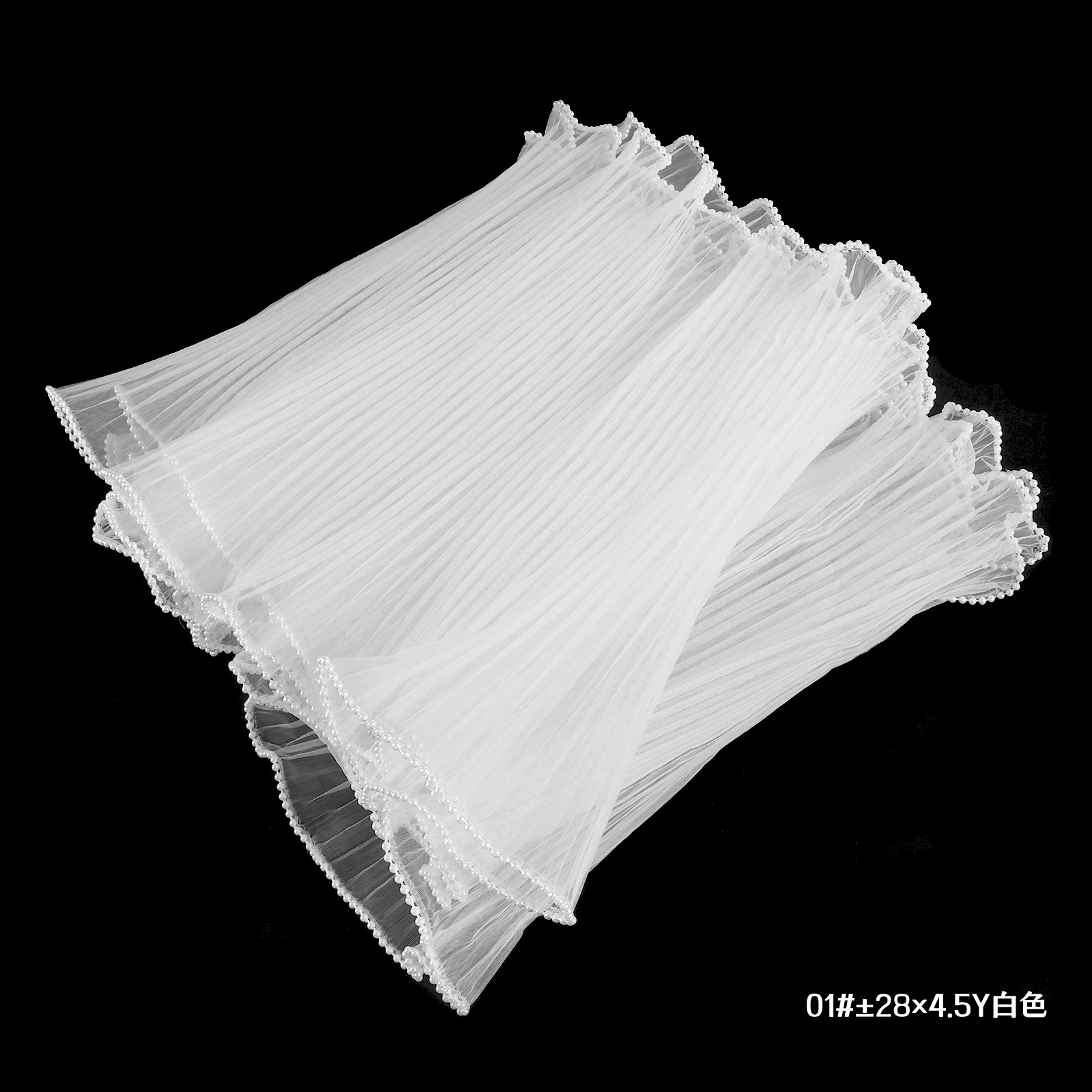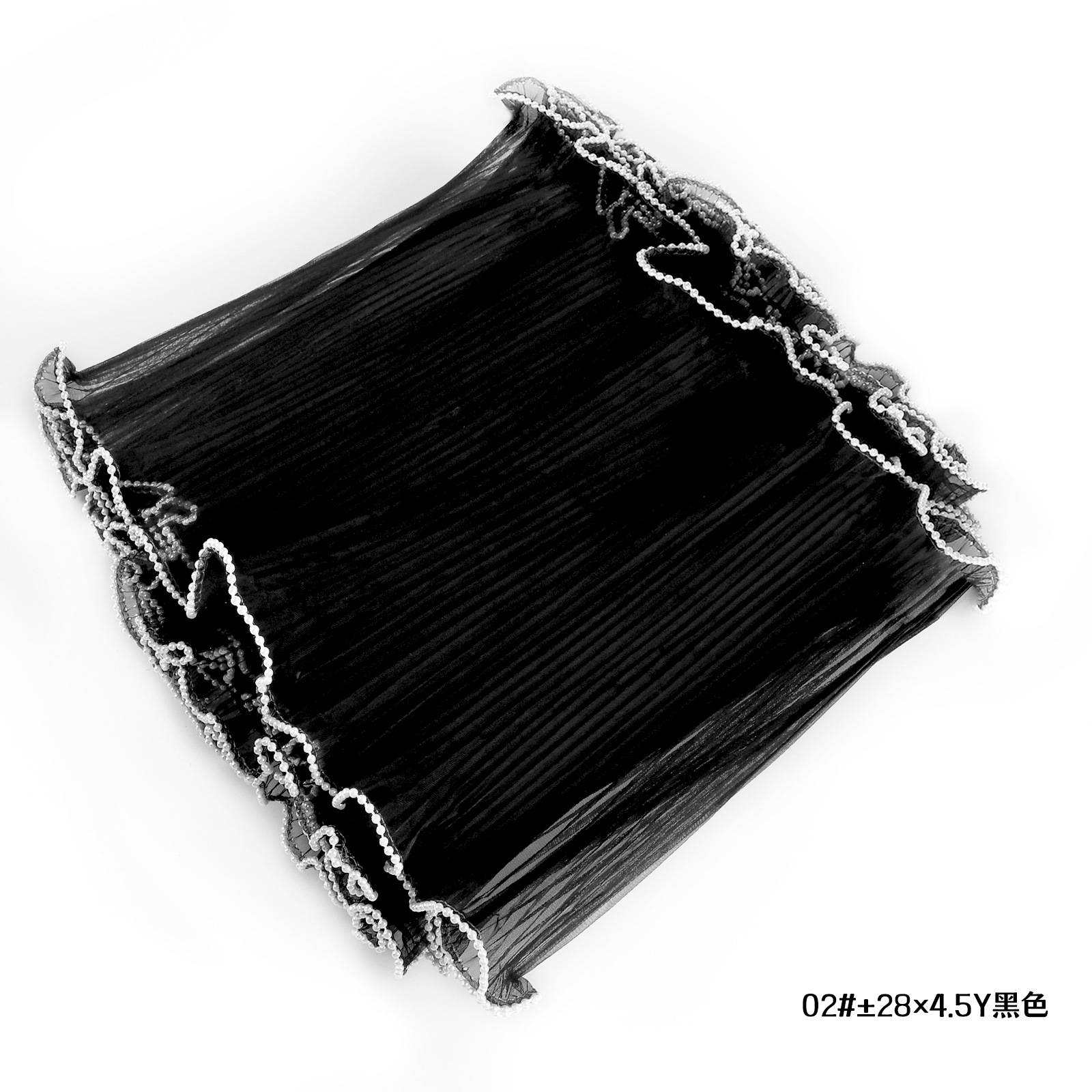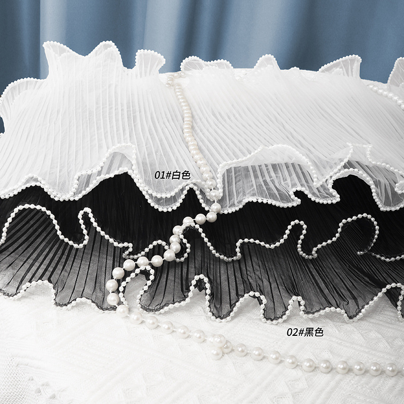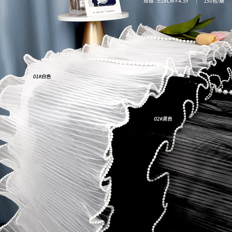 包装层次: opp 主要下游平台: wish,亚马逊,独立站,速卖通,LAZ 主要销售地区: 东南亚,东北亚,拉丁美洲,非洲,欧洲,中 是否跨境出口专供货源: 是 误差: +-2CM 货号: 双边珍珠浪花纱 002 原产国/地区: 中国 商品类型: 定制+现货 有可授权的自有品牌: 是 风格: ins风 材质: 涤纶 产地: 江西 工艺: 冷切 规格: 28CM*4.5码 颜色: 黑,白