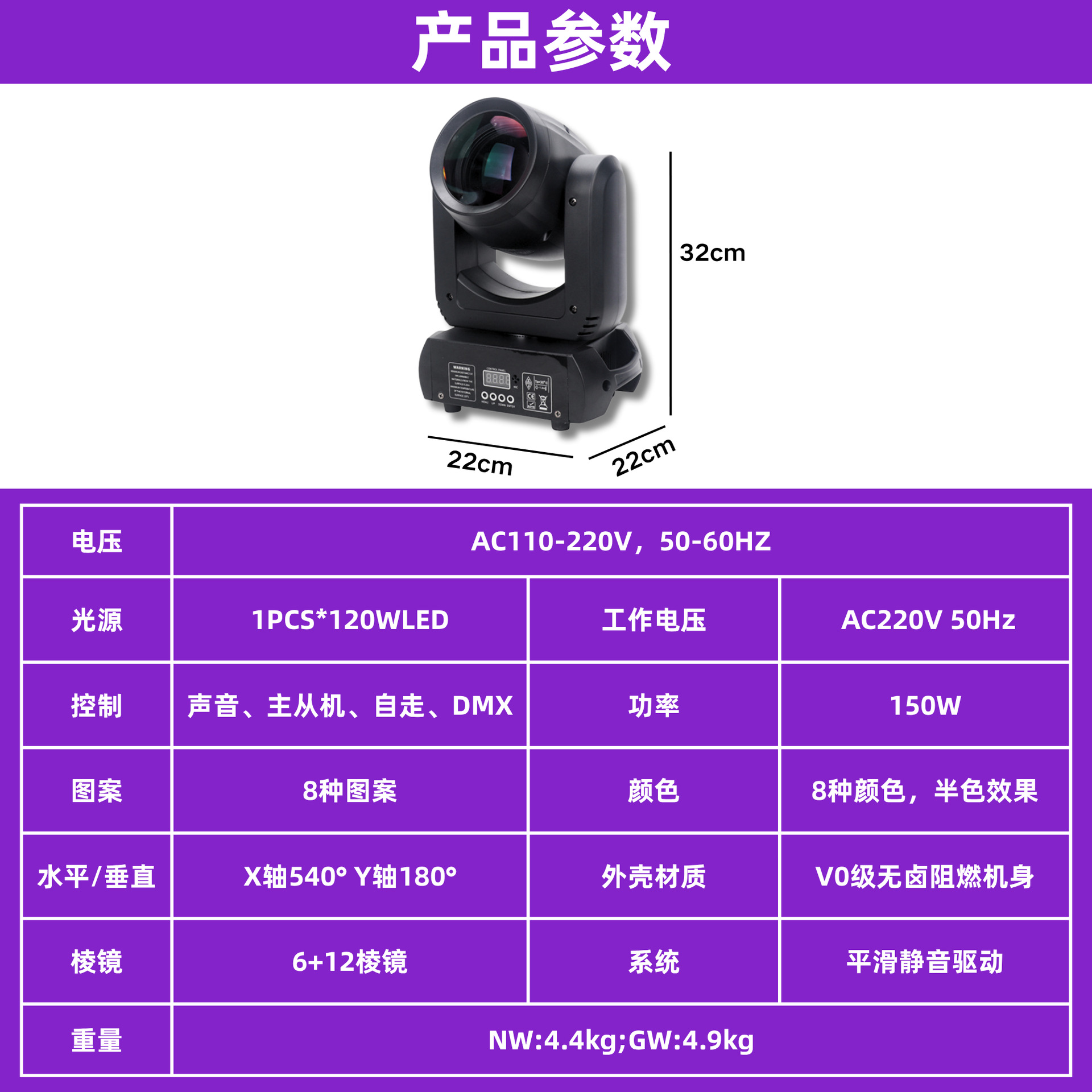 光源:1PCS*120WLED