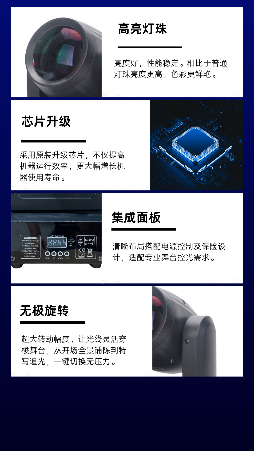 控制:声音、主从机、自走、DMX