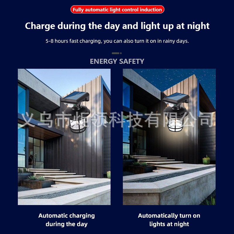 跨境新款户外太阳能壁灯人体感应庭院灯遥控款LED防水花园露台灯