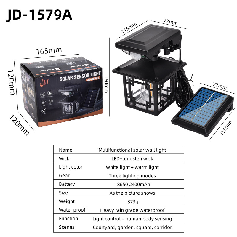 防护等级: IP65 开关类型: 感应式 品牌: 其他 光源类型: LED 连续照明时间: 12小时(含)-16小时(不含) 外形尺寸: 115*115*160mm 认证: 无 额定功率: 10 产地: 浙江 是否进口: 否 货号: JL-838 型号: 太阳能庭院灯 规格分类: 太阳能庭院灯【圆形一体】,太阳能庭院灯【 电压: 3.7v 寿命: 20000h 主要下游平台: ebay,亚马逊,wish,速卖通,独立 主要销售地区: 非洲,欧洲,南美,东南亚,北美,东北亚, 有可授权的自有品牌: 否 是否跨境出口专供货源: 是 风格: 田园 重量: 0.3 kg/只