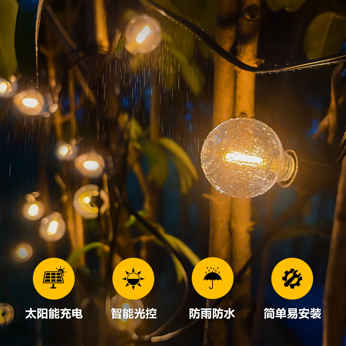 太阳能多功能灯串户外露营氛围灯庭院花园装饰灯智能光控复古灯 投诉