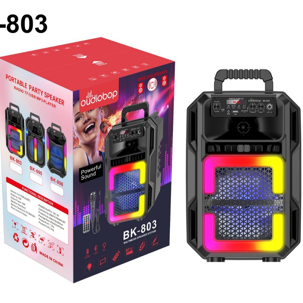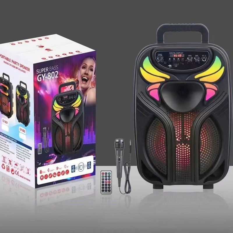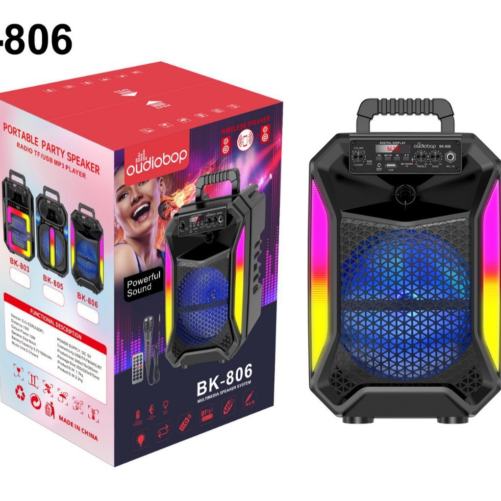 功能:BT/FM/TWS/USB/TF/AUX/MIC/显示屏/3个旋钮(音量, 高音,低音)