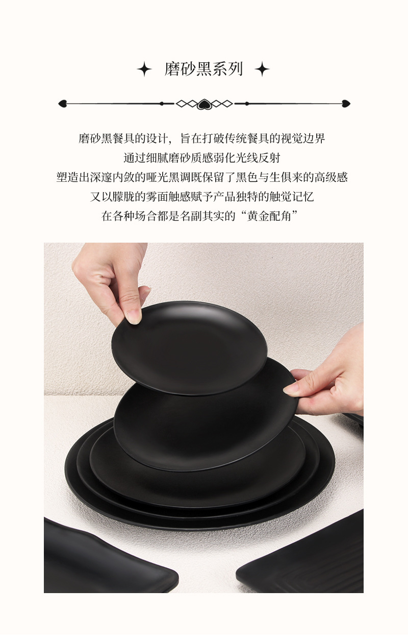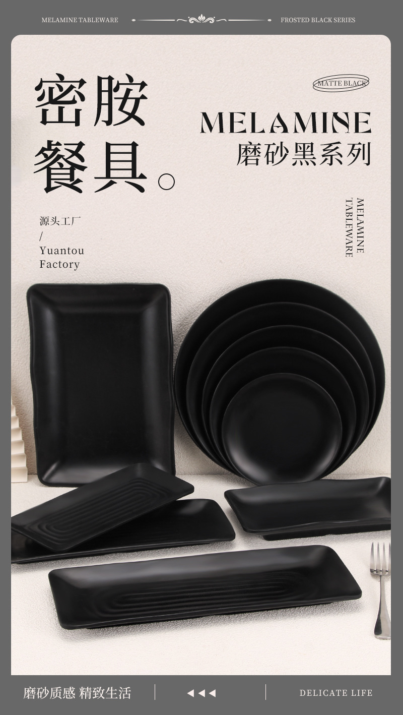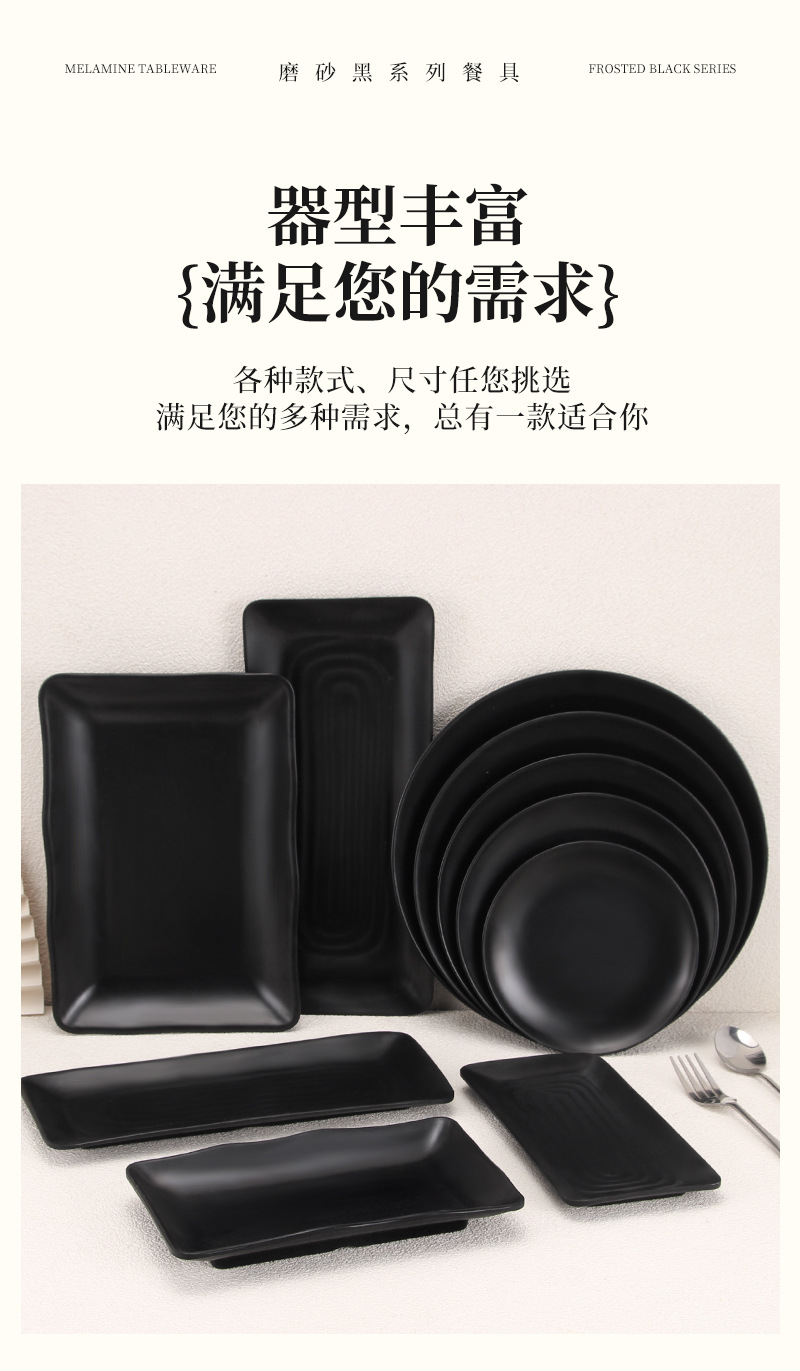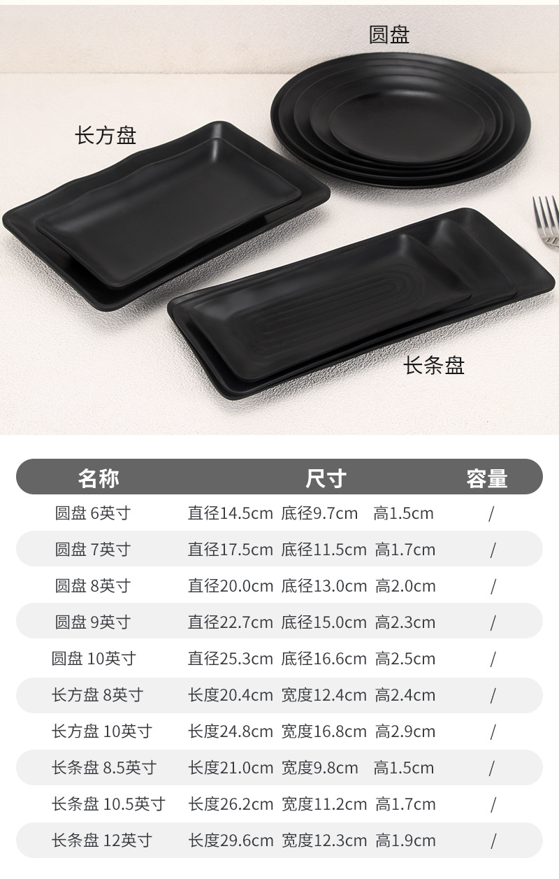 磨砂黑密胺火锅配菜烧烤冷菜烤肉盘子商用碟子餐饮酒吧小吃碟骨碟 投诉