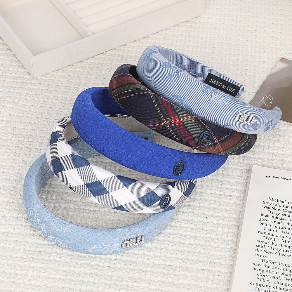 新款蓝色系法式甜美气质高颅顶发箍布艺清新时尚百搭头饰厂家批发 English | 投诉