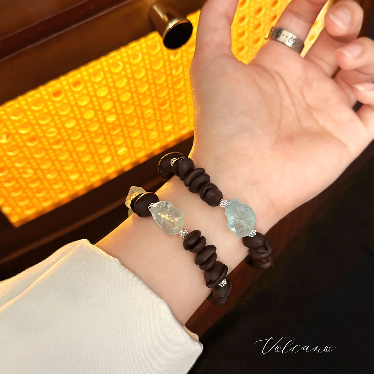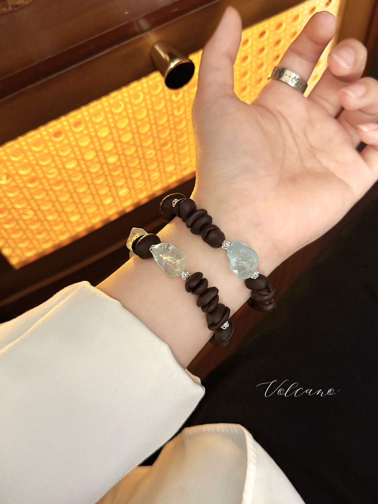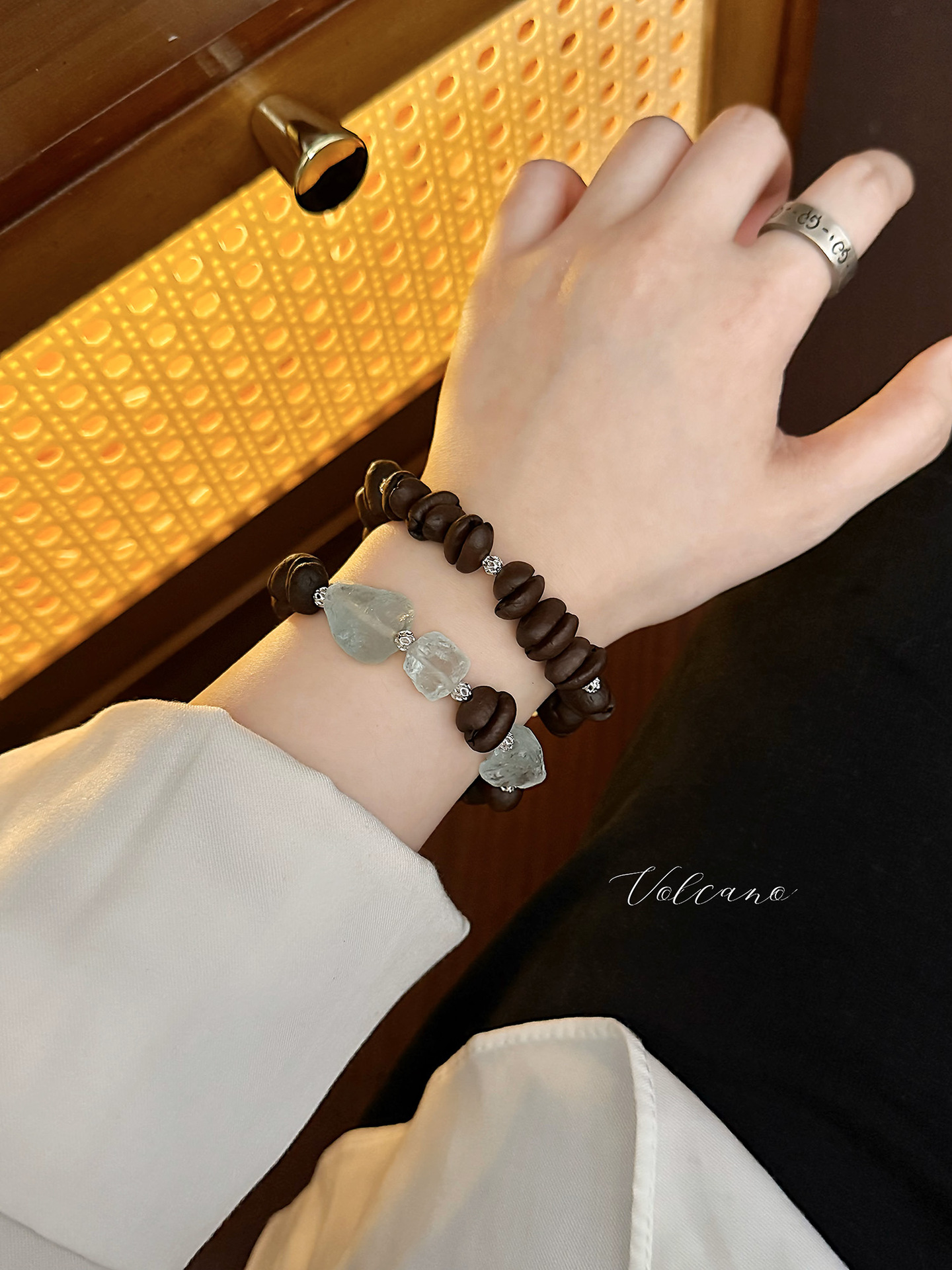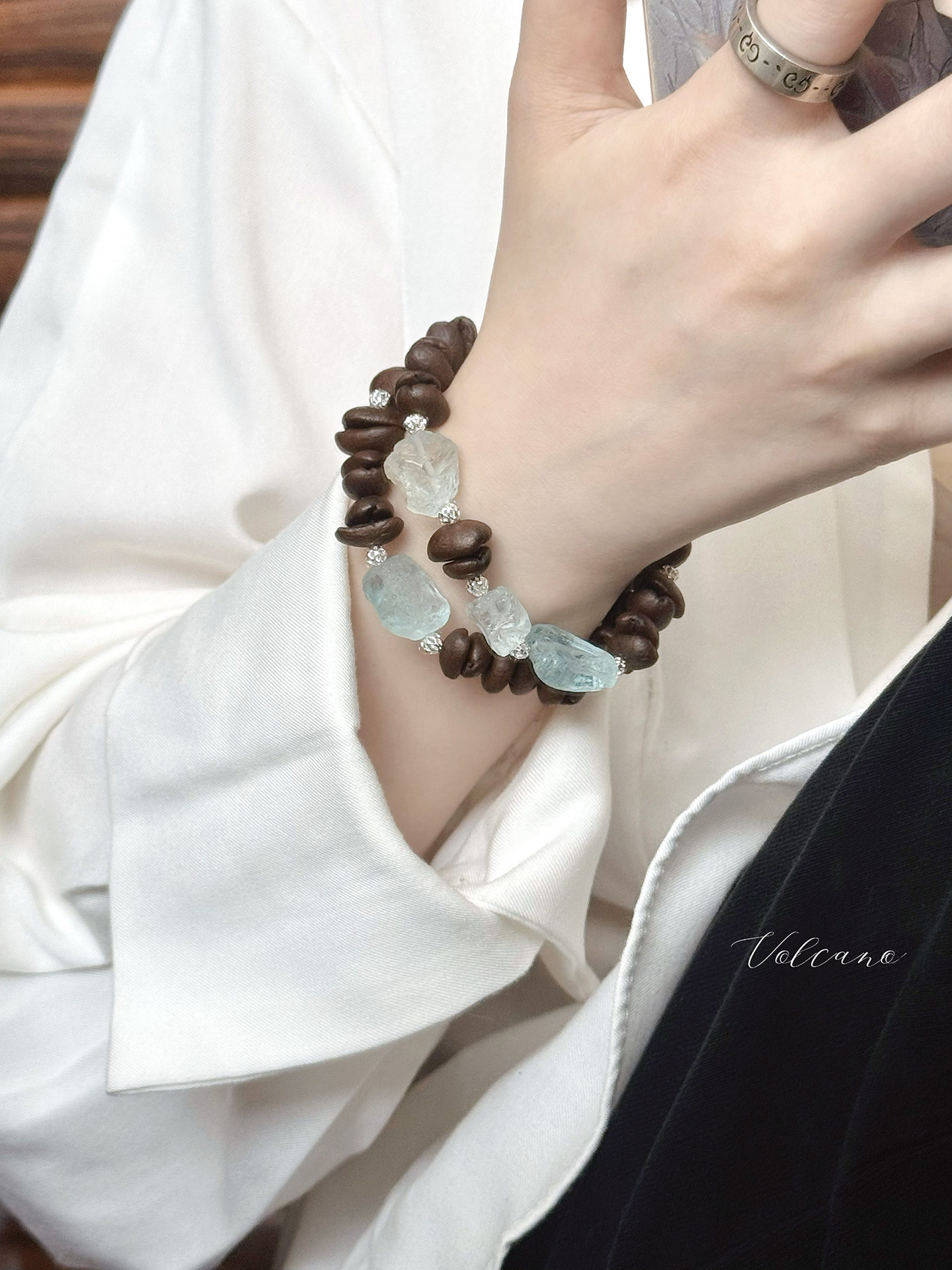小众原创设计【冰美式】天然咖啡豆手串香味新中式手链碎石手工款
