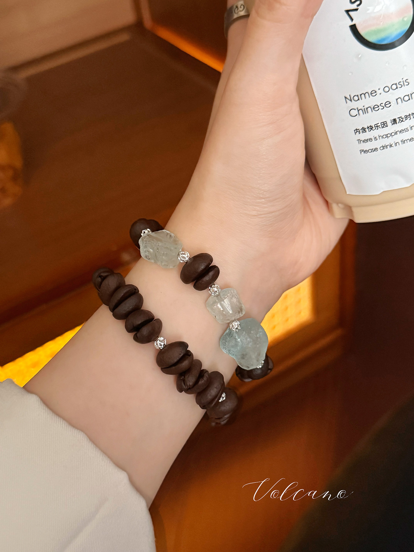 小众原创设计【冰美式】天然咖啡豆手串香味新中式手链碎石手工款 English | 投诉