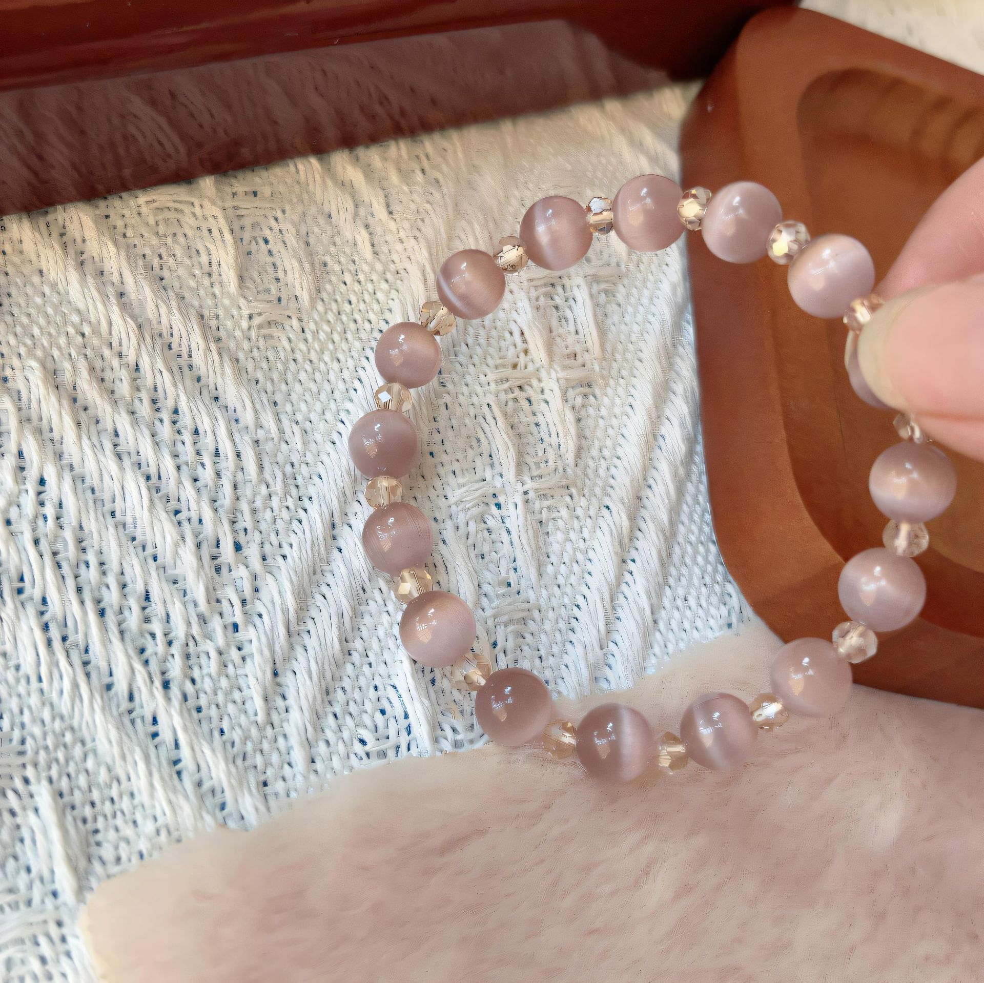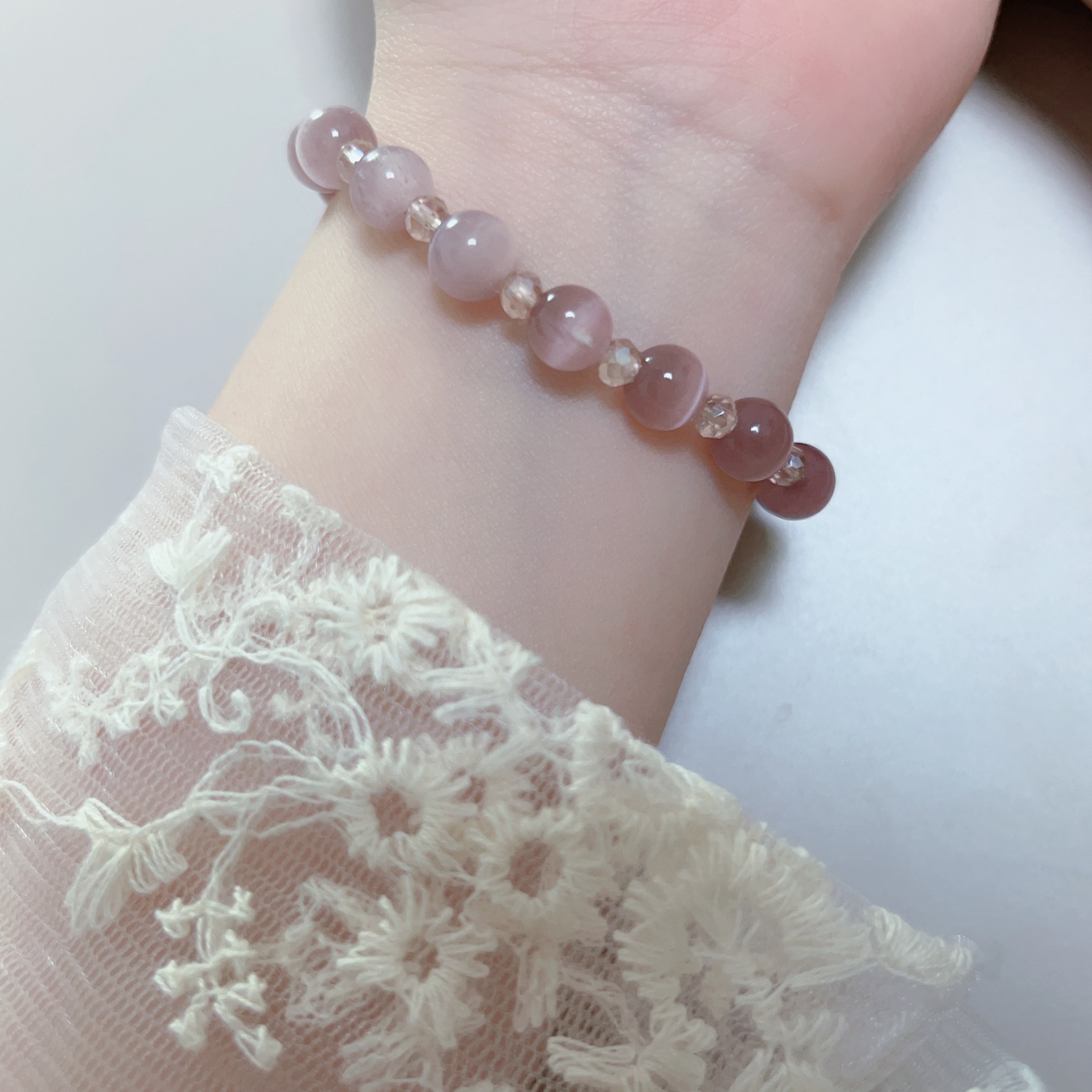 原创设计手串清新气质优雅轻熟冷感灰紫色猫眼石尖晶女手链