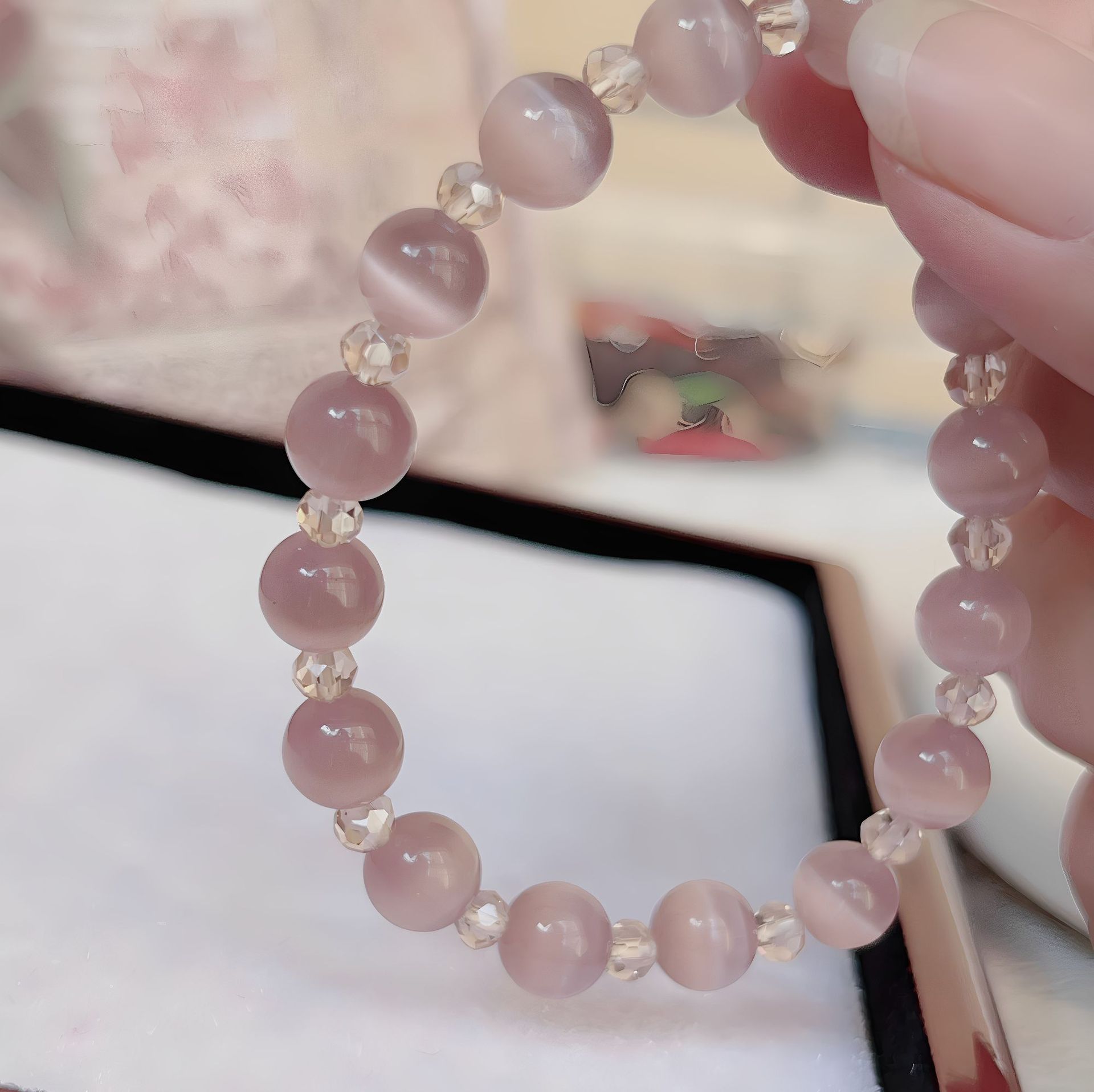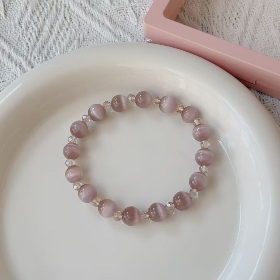 原创设计手串清新气质优雅轻熟冷感灰紫色猫眼石尖晶女手链 English | 投诉