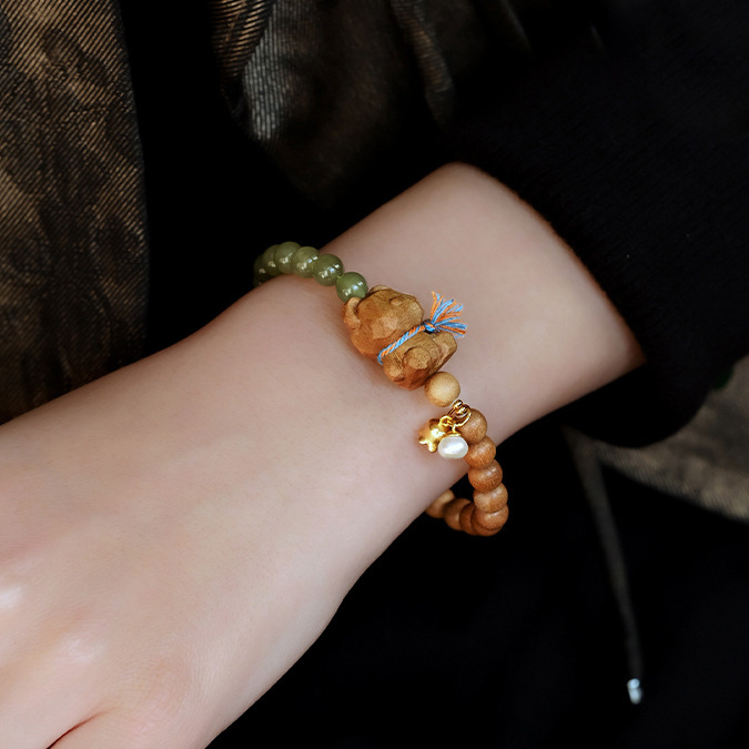 高端老山檀手串真品女款天然印度迈索尔檀香女士和田小熊手链文玩