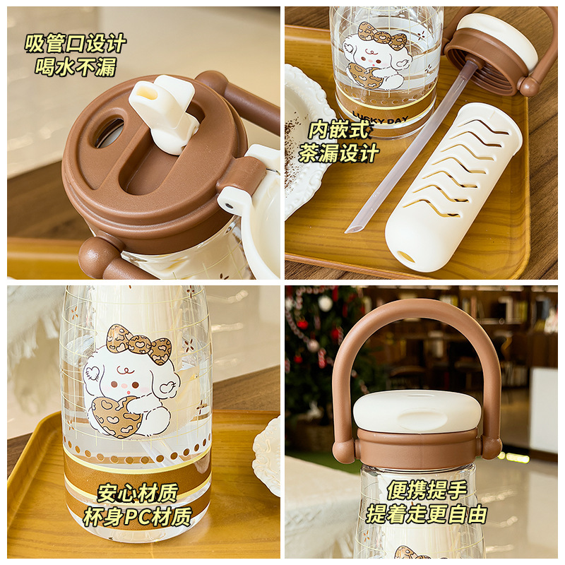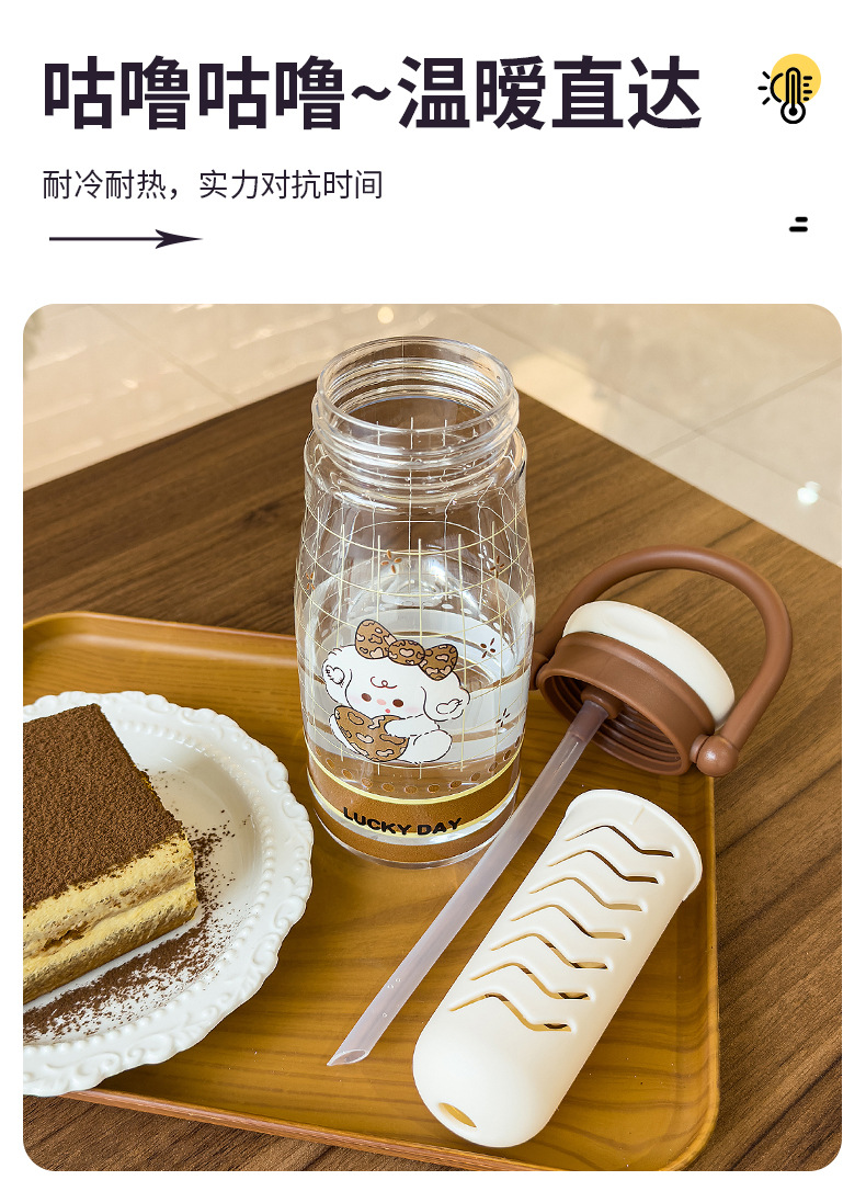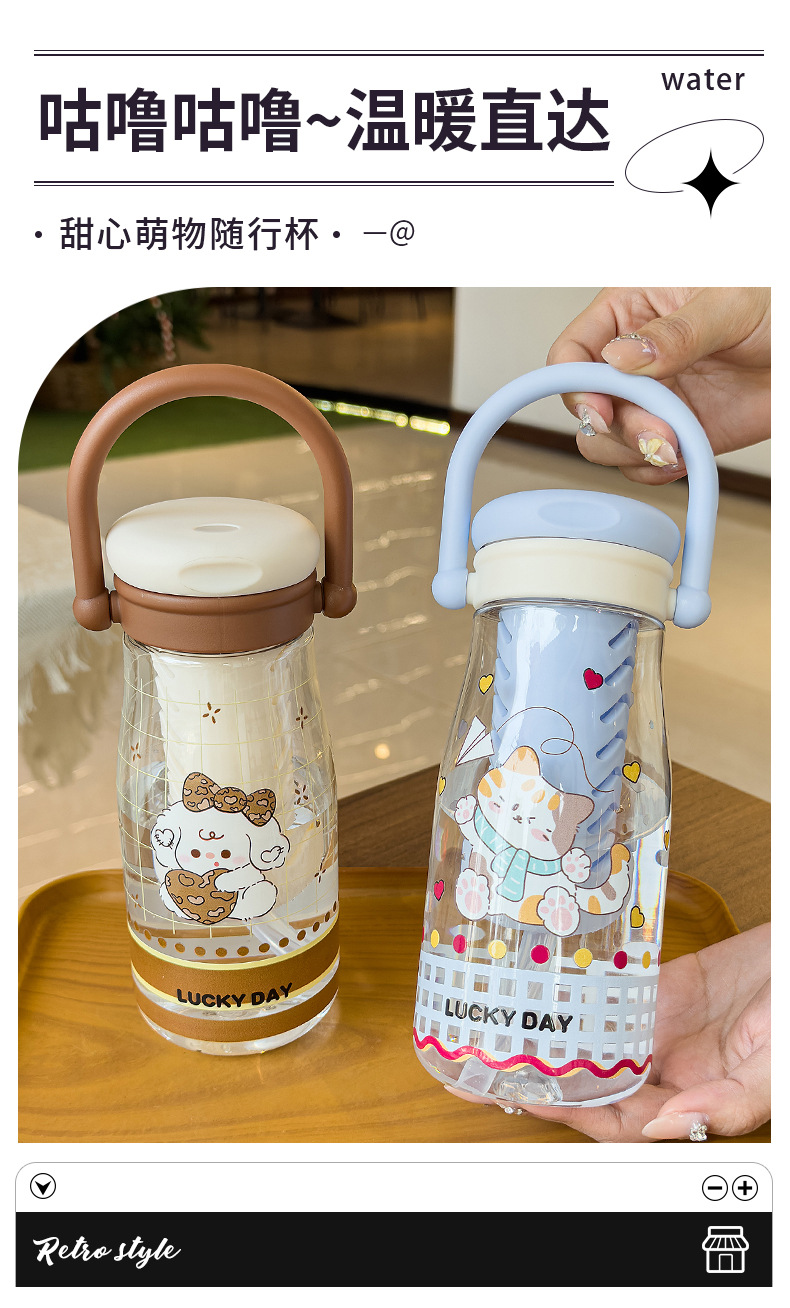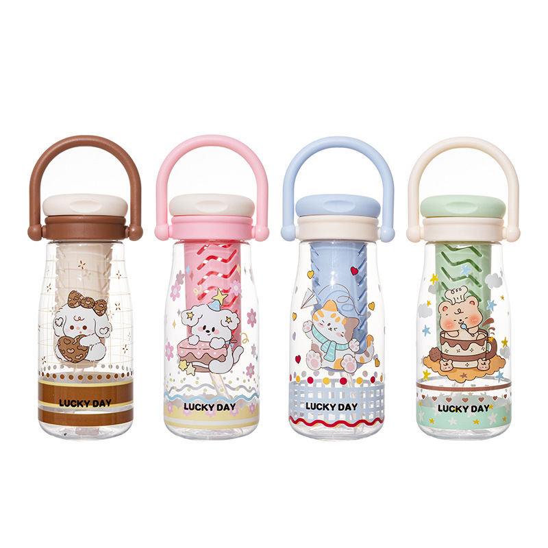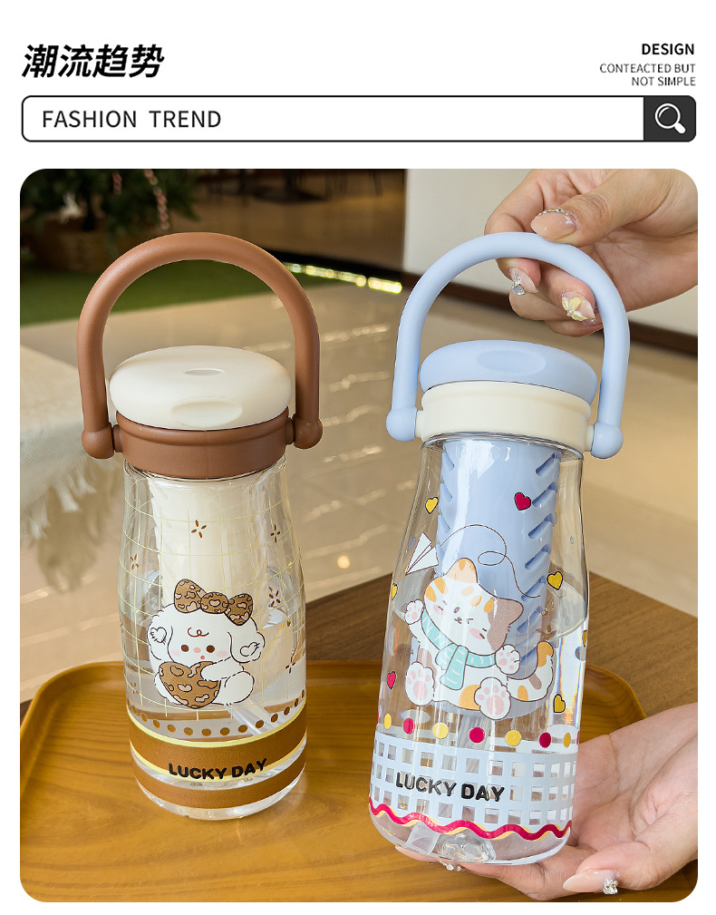 可爱卡通儿童吸管杯学生户外郊游便携随行杯情侣茶水分离塑料水杯 English | 投诉