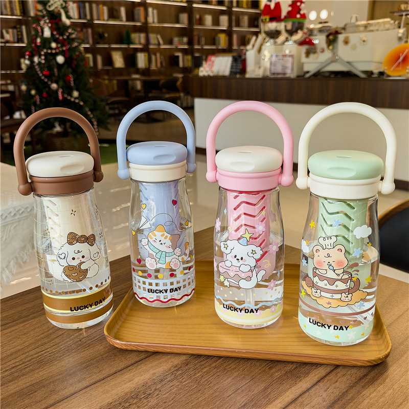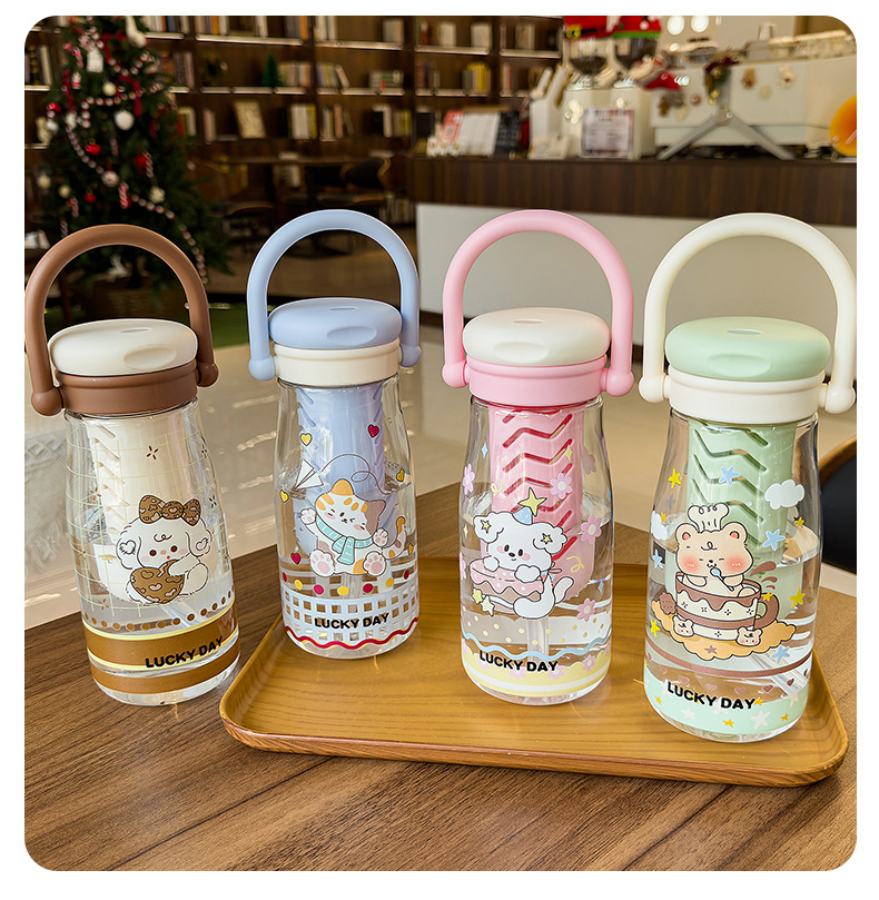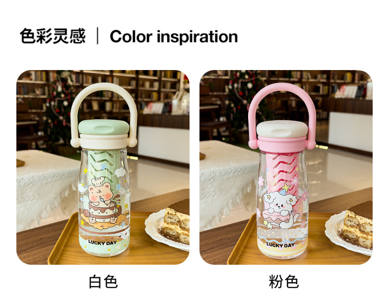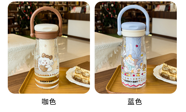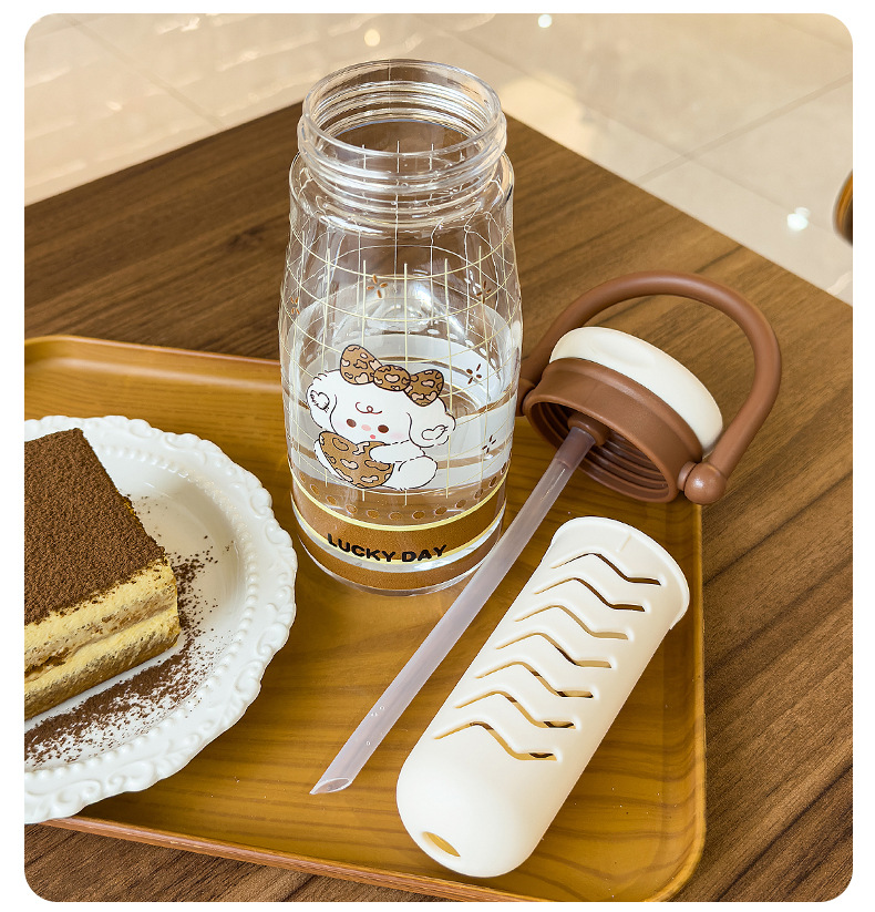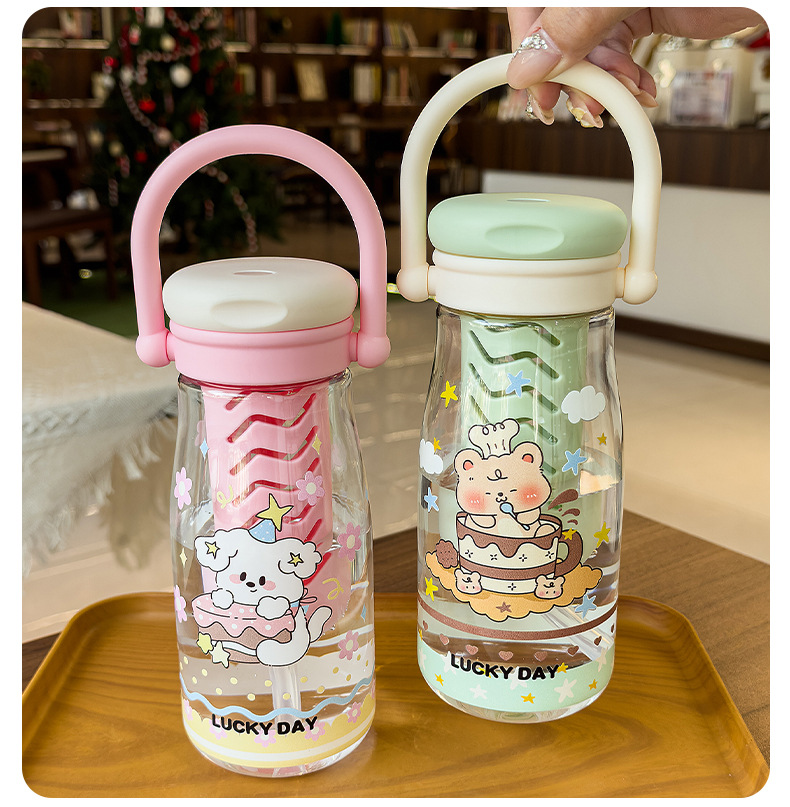 可爱卡通儿童吸管杯学生户外郊游便携随行杯情侣茶水分离塑料水杯 English | 投诉