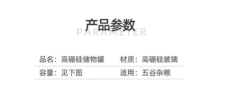 | 咖啡豆密封罐直径10cm高度10.5cm;透明;高硼硅玻璃 | ¥1060 | 10000个可售 |
